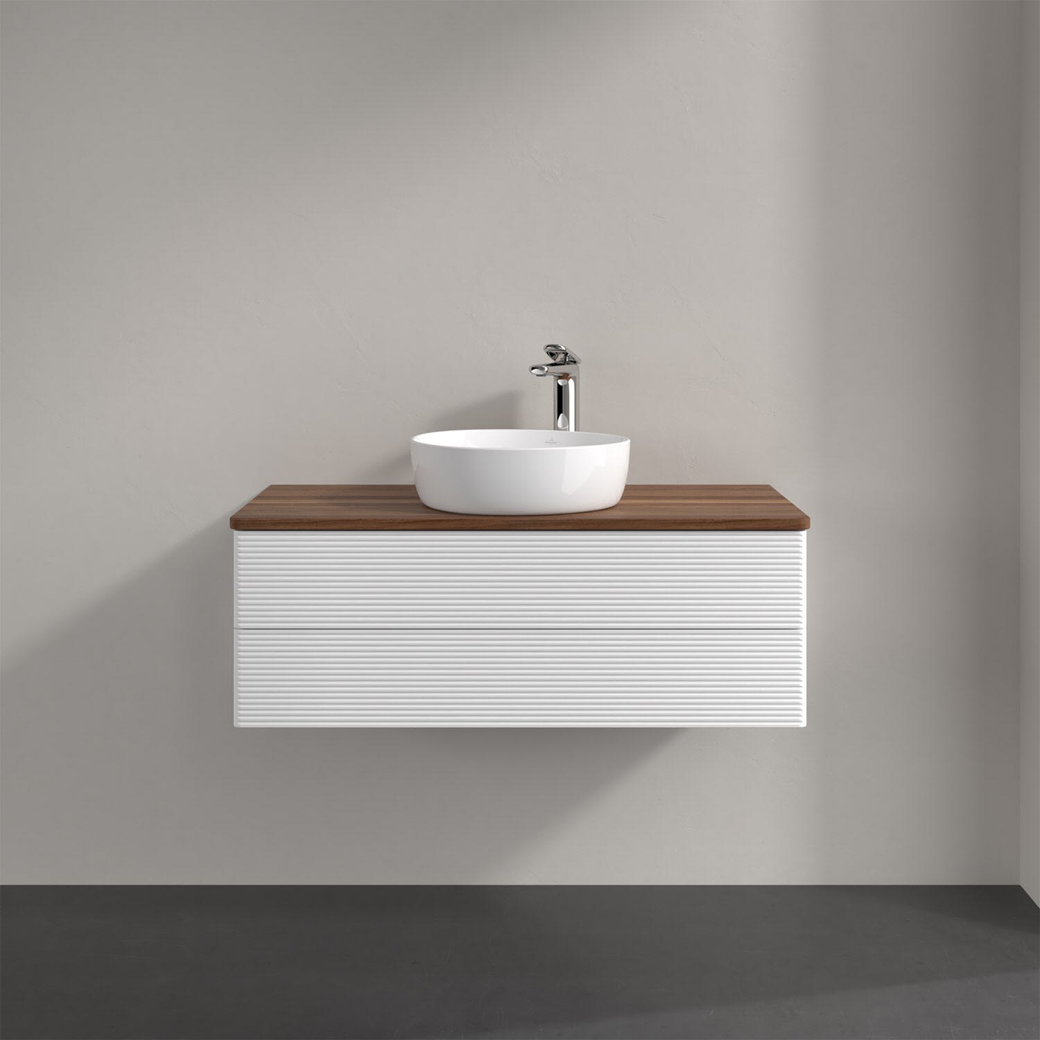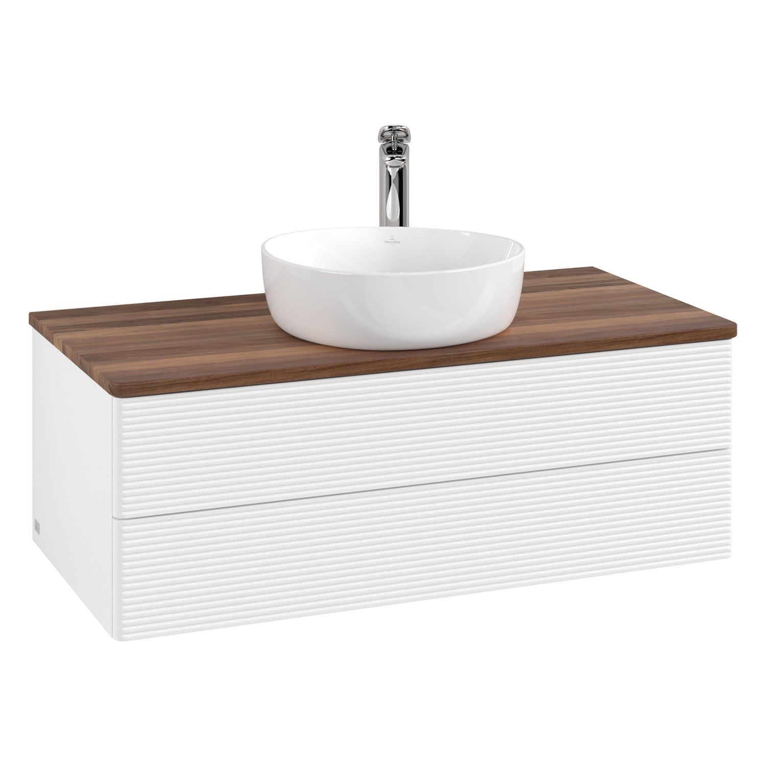 Villeroy & Boch Antao Waschbeckenunterschrank, 100 x 36 cm, 2 Auszüge mit LED-Licht, Front mit Struktur, mit Hahnloch