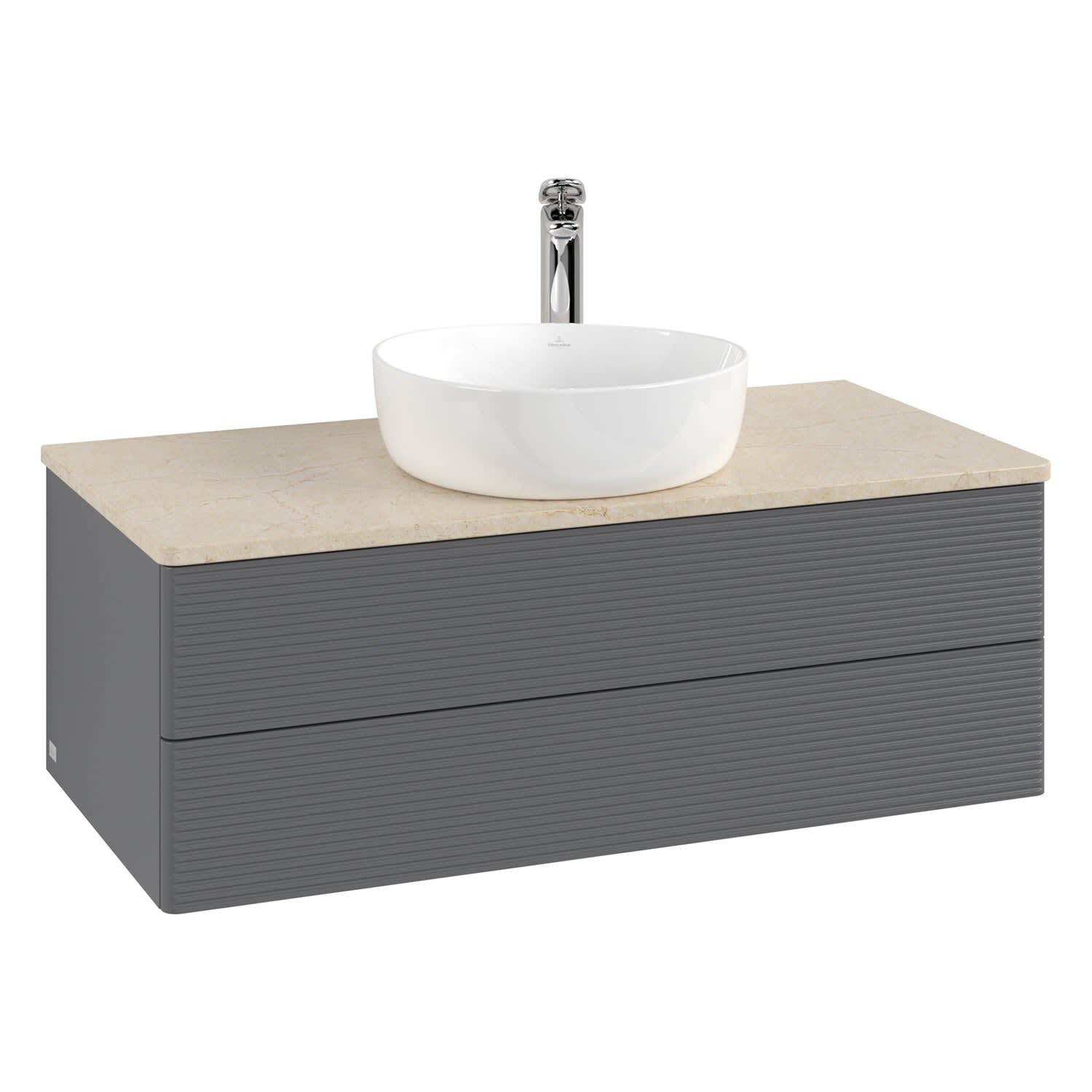 Villeroy & Boch Antao Waschbeckenunterschrank, 100 x 36 cm, 2 Auszüge mit LED-Licht, Front mit Struktur, mit Hahnloch