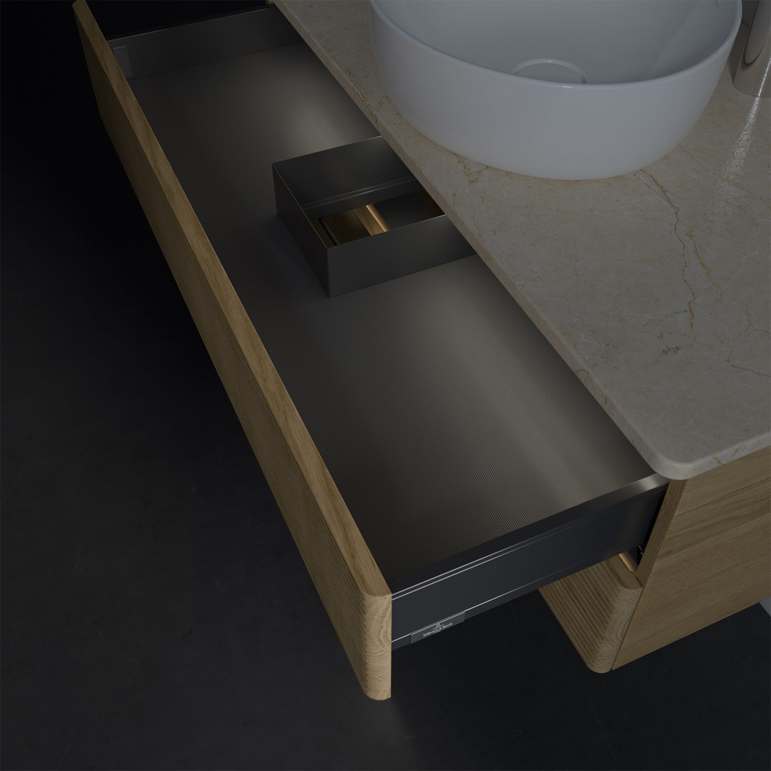 Villeroy & Boch Antao Waschbeckenunterschrank, 100 x 36 cm, 2 Auszüge mit LED-Licht, Front mit Struktur, mit Hahnloch