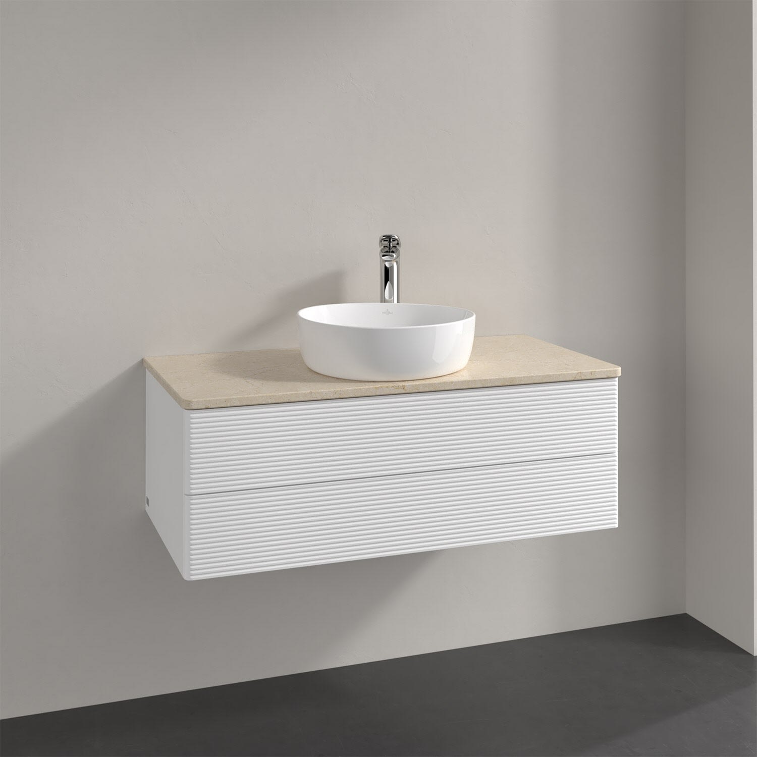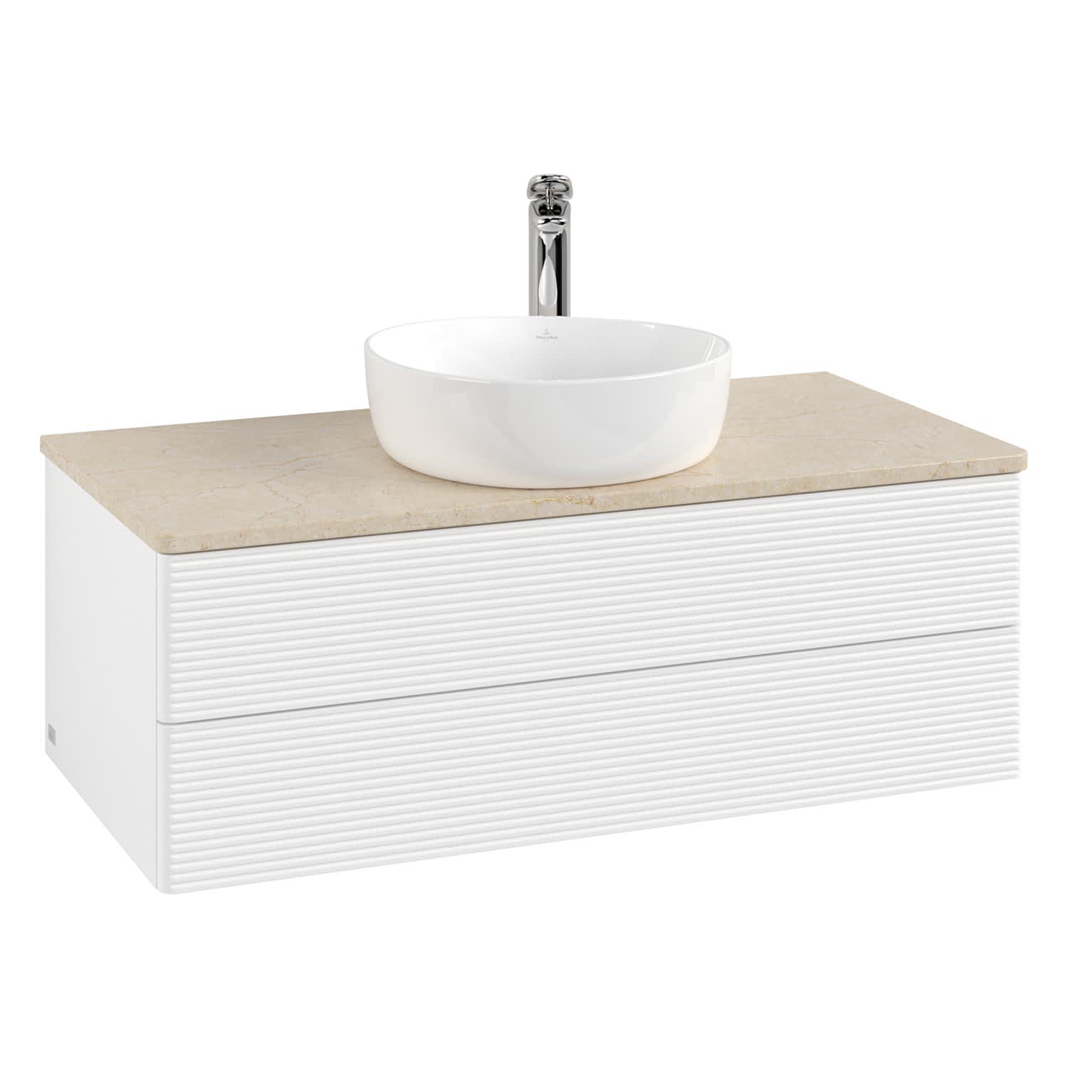 Villeroy & Boch Antao Waschbeckenunterschrank, 100 x 36 cm, 2 Auszüge mit LED-Licht, Front mit Struktur, mit Hahnloch