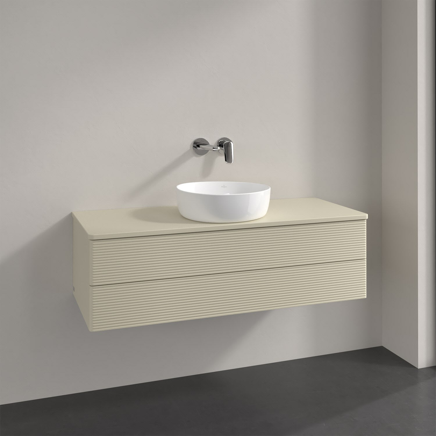 Villeroy & Boch Antao Waschbeckenunterschrank, 120 x 36 cm, 2 Auszüge mit LED-Licht, Front mit Struktur, mit Hahnloch, für Waschtisch mittig