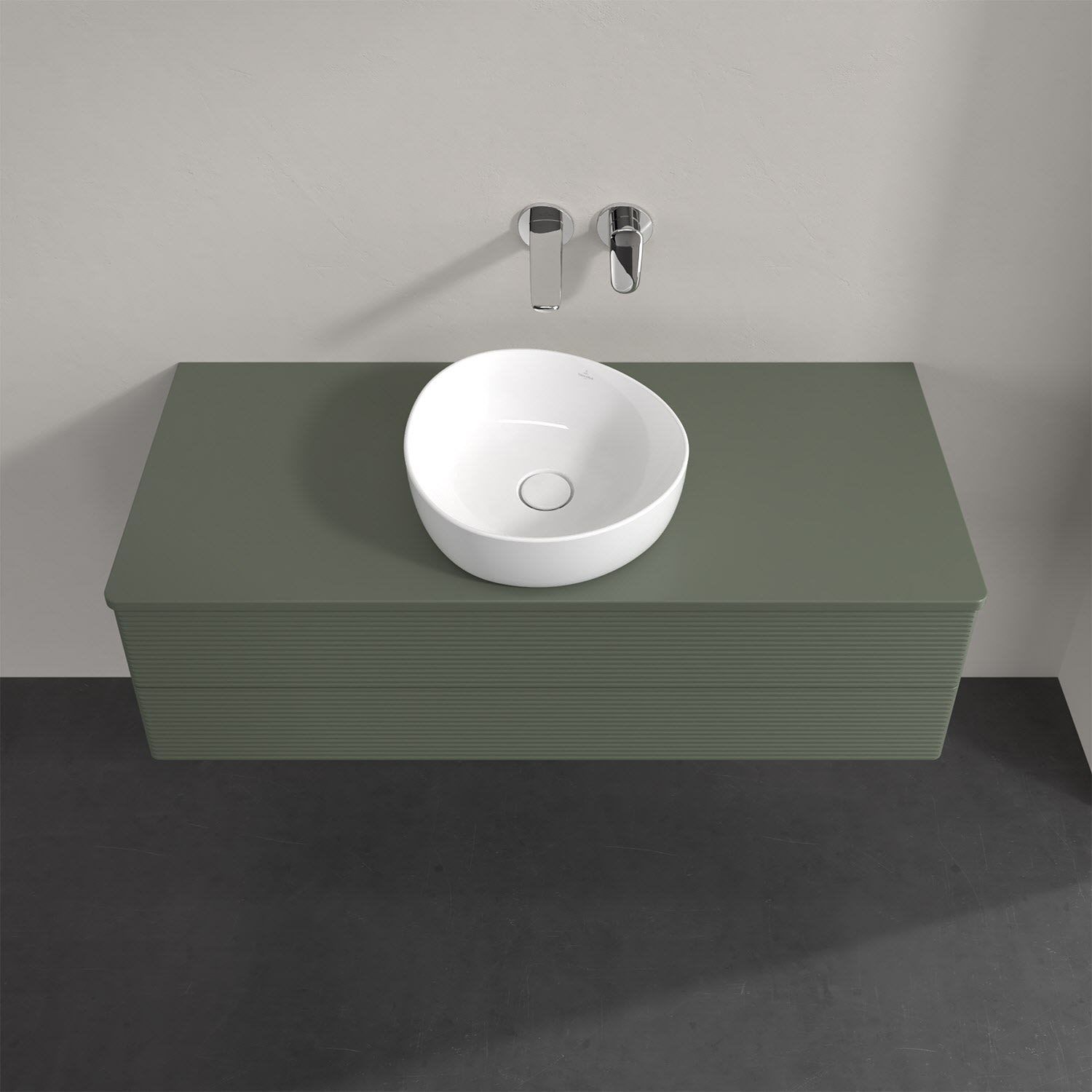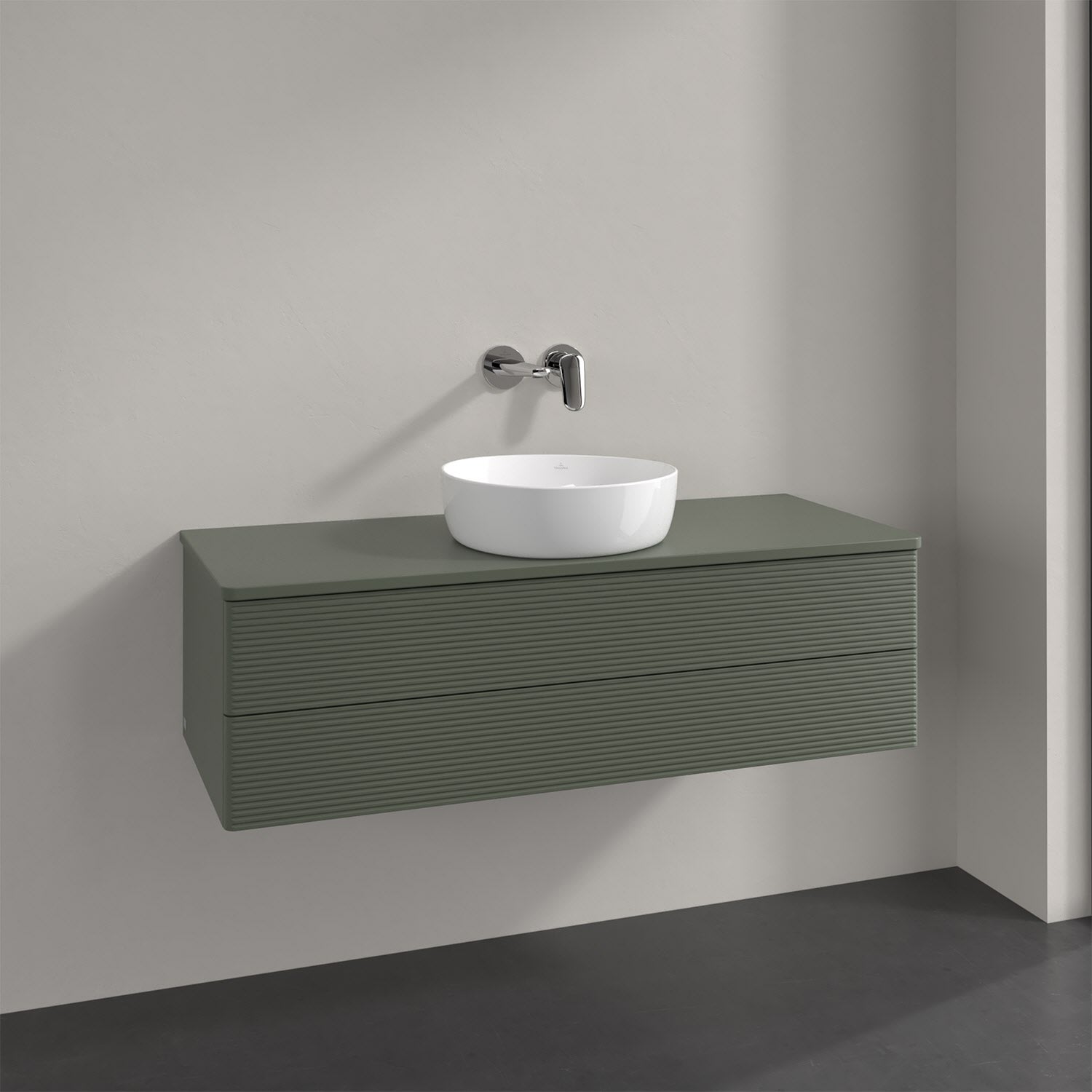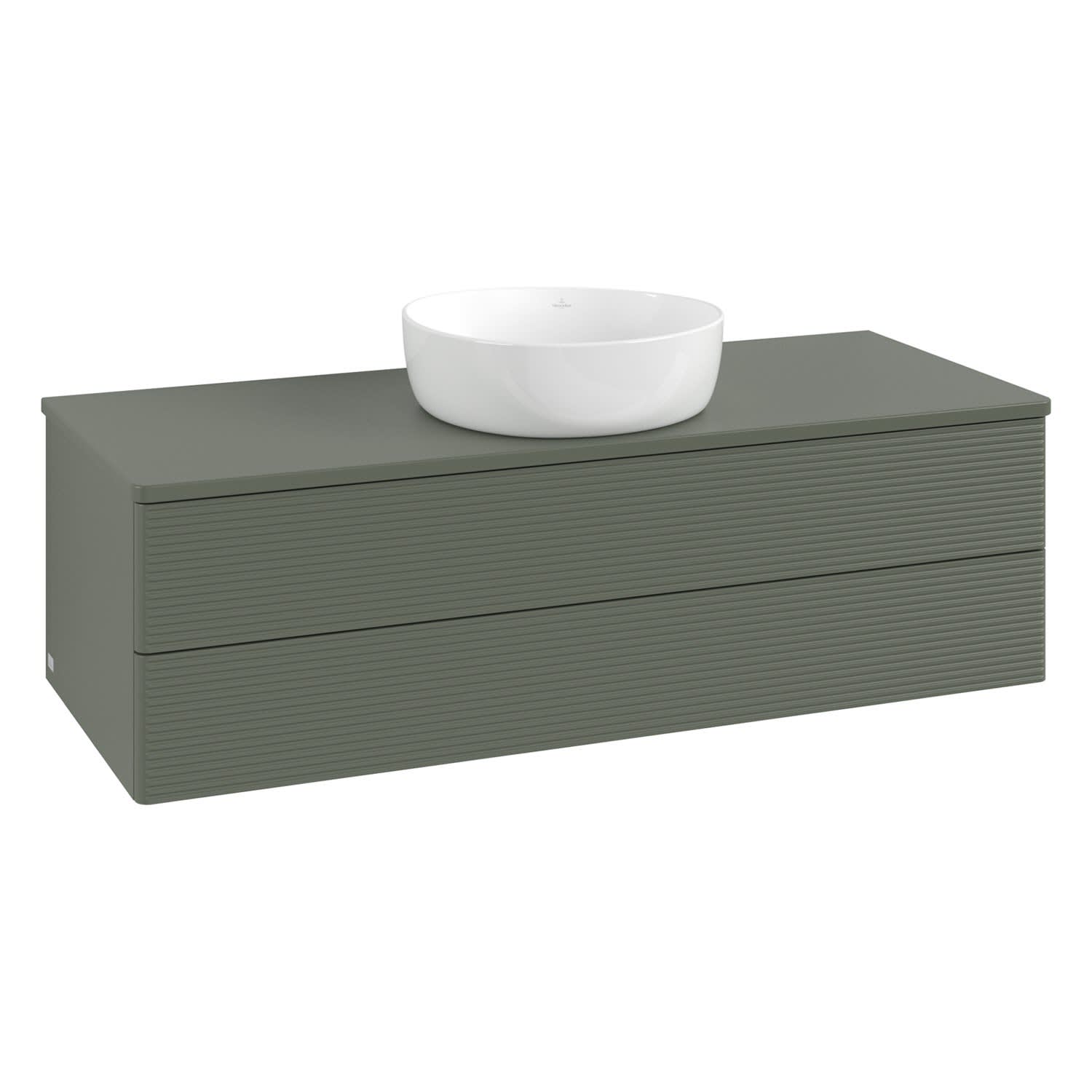 Villeroy & Boch Antao Waschbeckenunterschrank, 120 x 36 cm, 2 Auszüge mit LED-Licht, Front mit Struktur, mit Hahnloch, für Waschtisch mittig