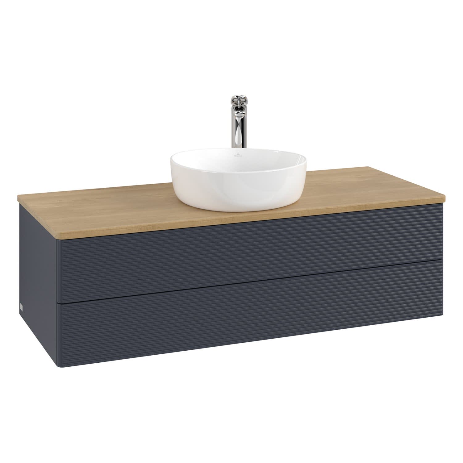 Villeroy & Boch Antao Waschbeckenunterschrank, 120 x 36 cm, 2 Auszüge mit LED-Licht, Front mit Struktur, mit Hahnloch, für Waschtisch mittig