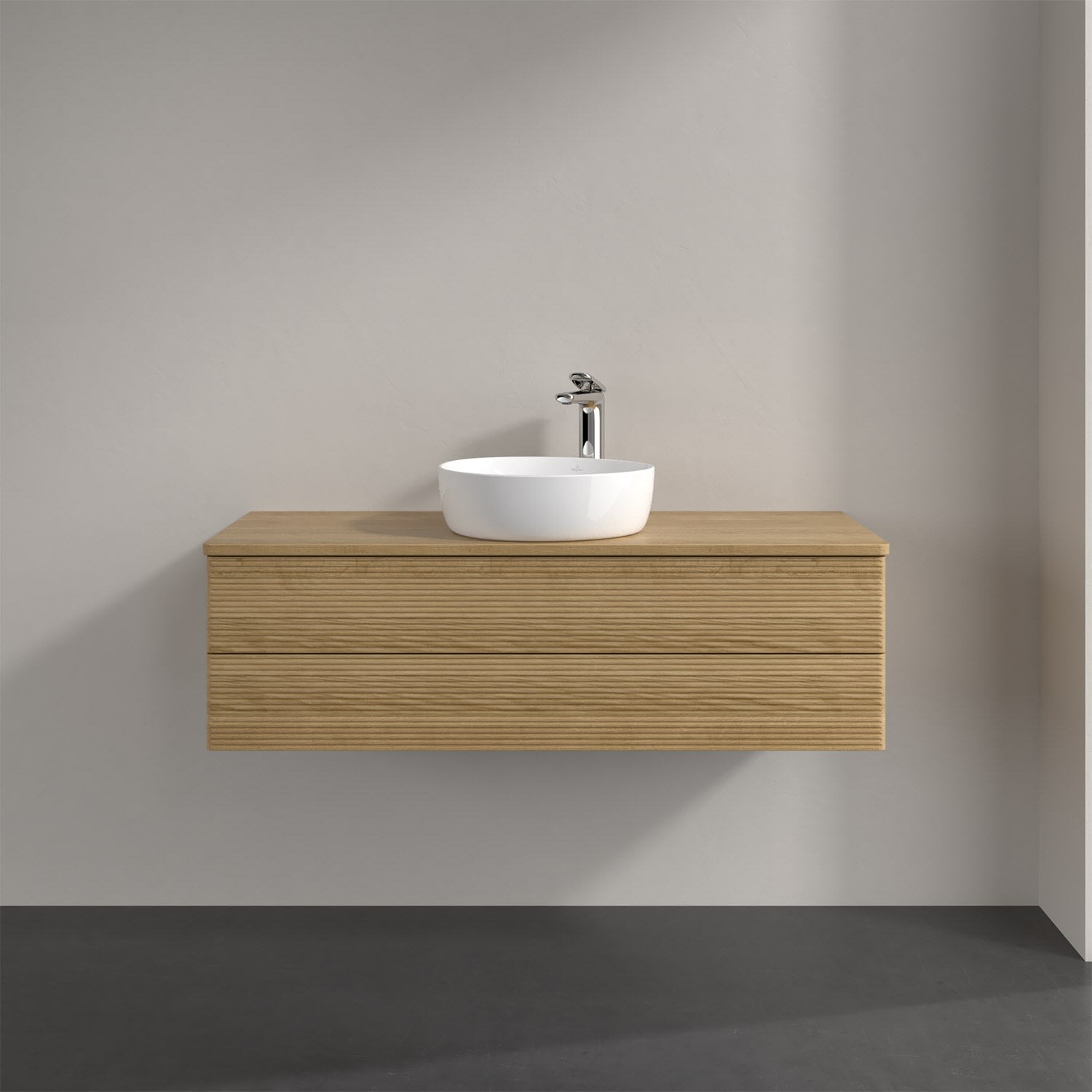 Villeroy & Boch Antao Waschbeckenunterschrank, 120 x 36 cm, 2 Auszüge mit LED-Licht, Front mit Struktur, mit Hahnloch, für Waschtisch mittig