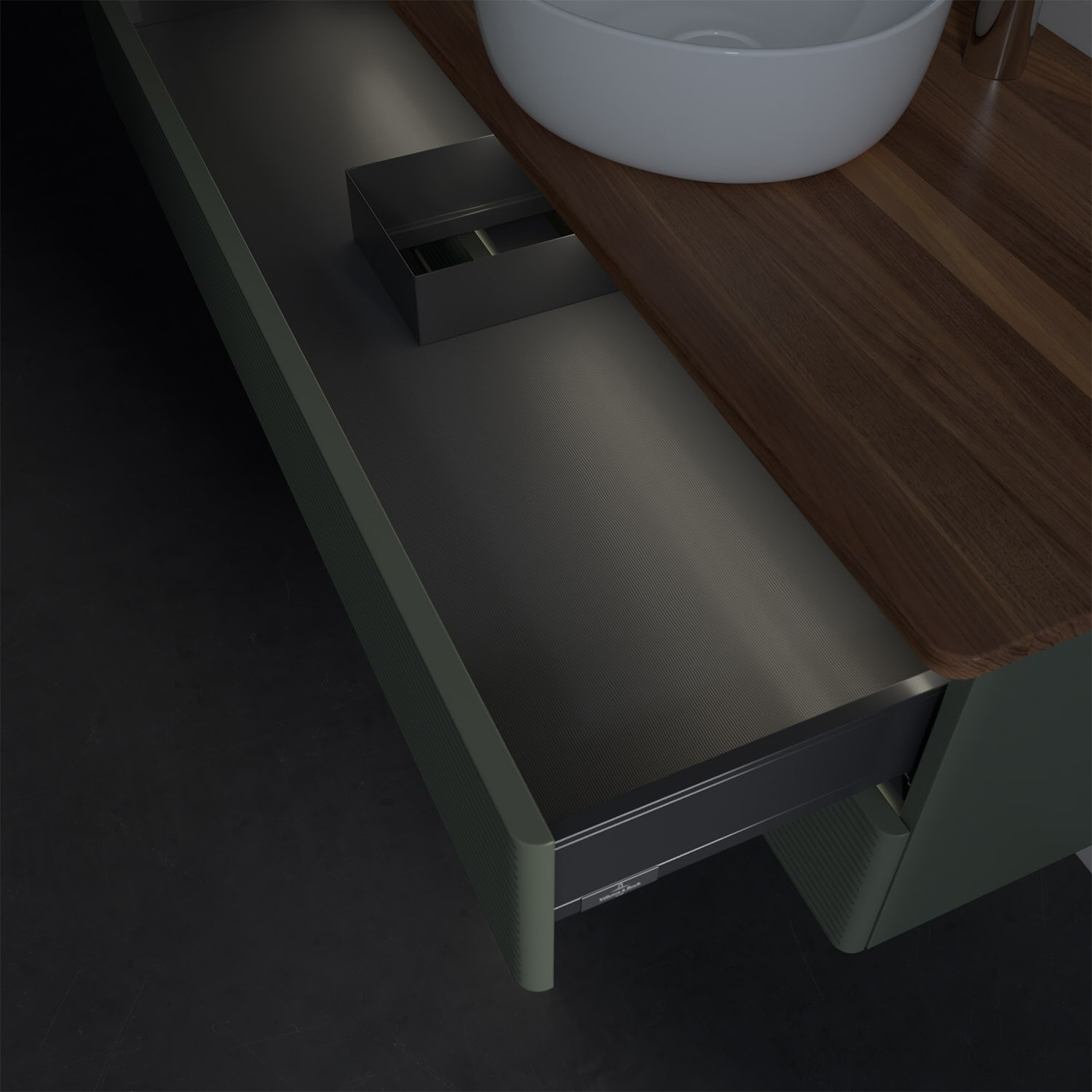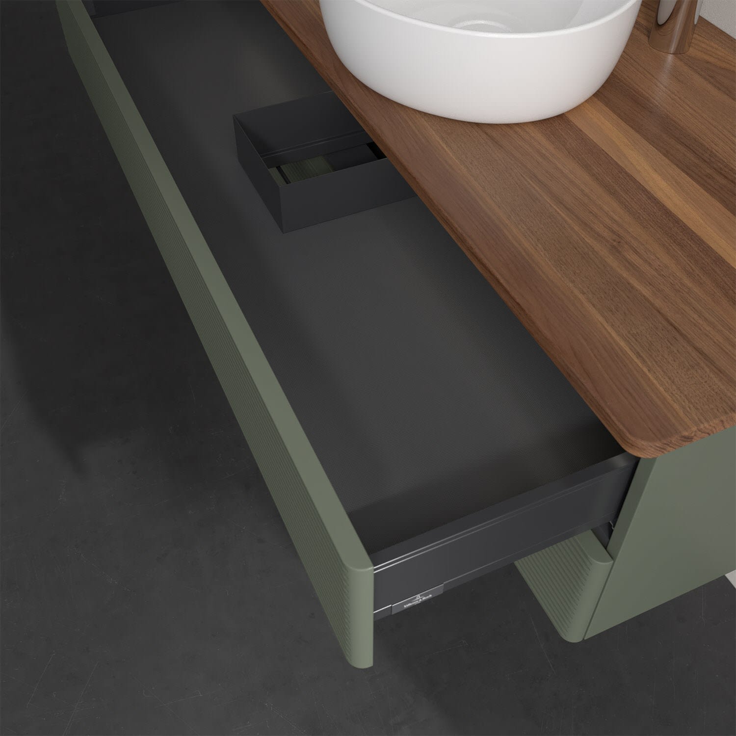 - kein Umfallen oder Verrutschen von Pflegeprodukten in den Schubladen dank rutschhemmendem Boden