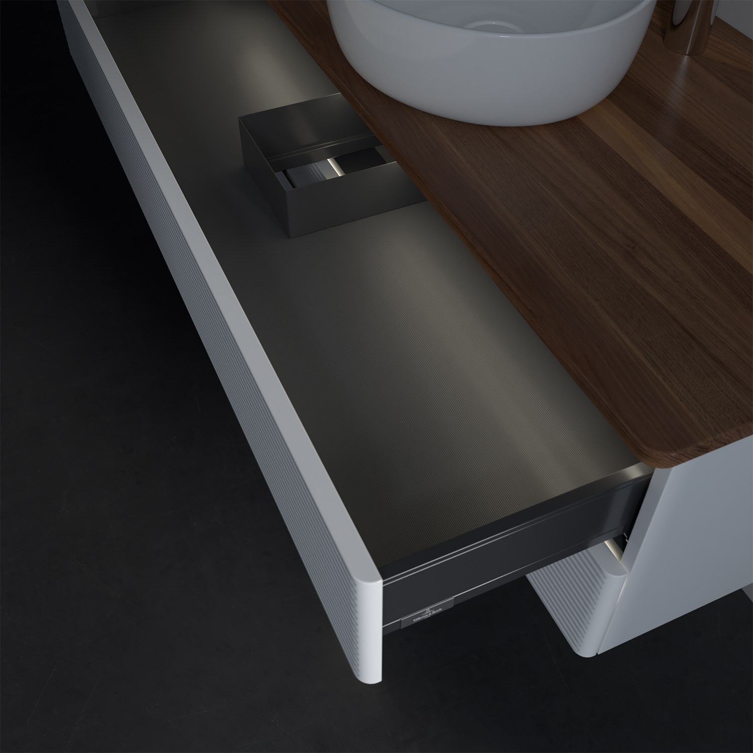 Villeroy & Boch Antao Waschbeckenunterschrank, 120 x 36 cm, 2 Auszüge mit LED-Licht, Front mit Struktur, mit Hahnloch, für Waschtisch mittig