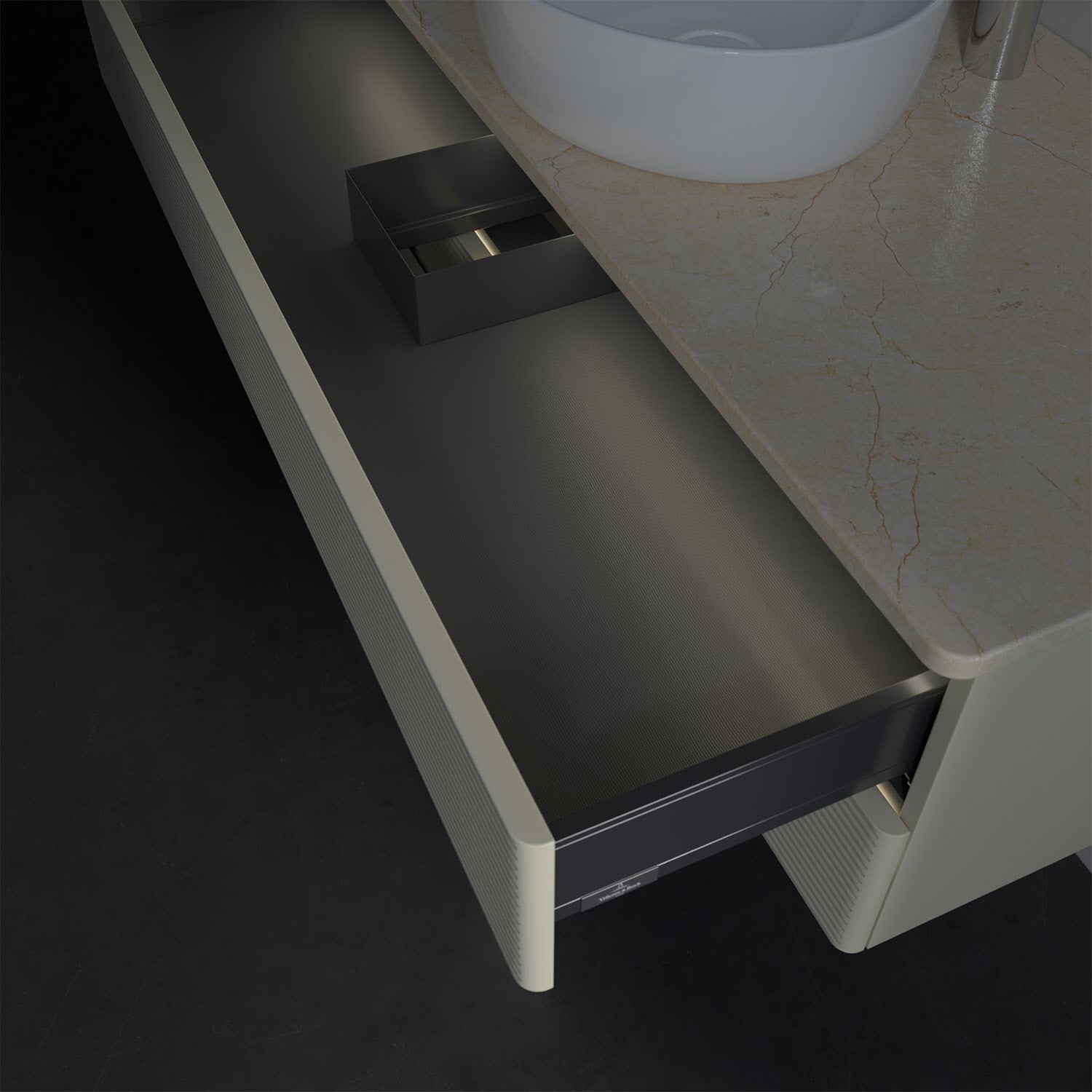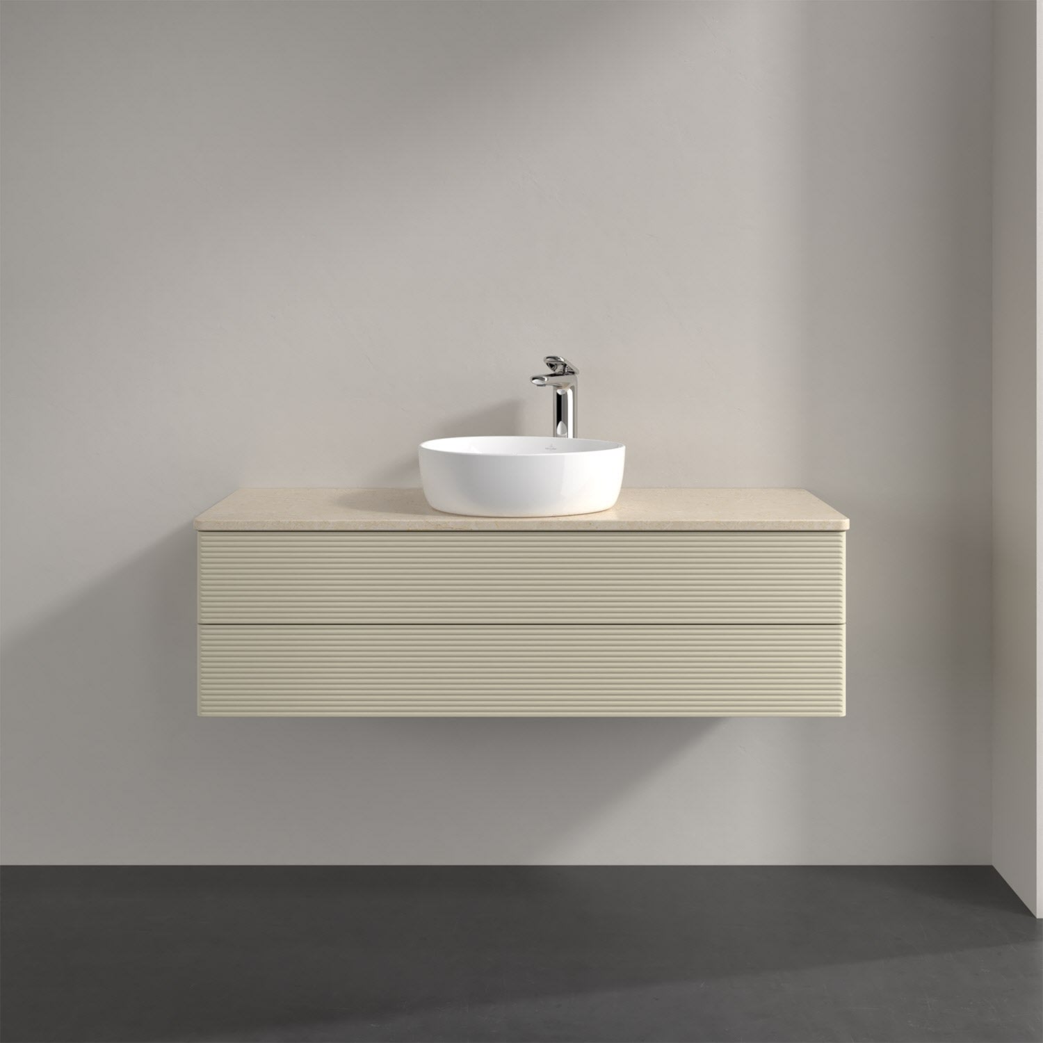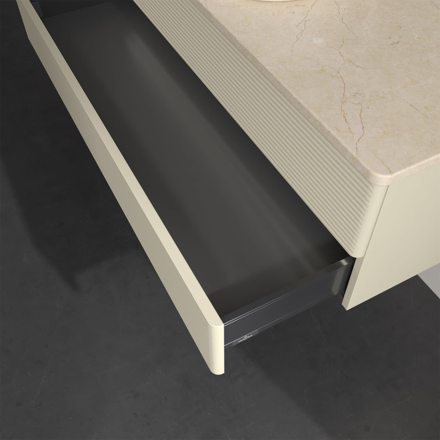 Villeroy & Boch Antao Waschbeckenunterschrank, 120 x 36 cm, 2 Auszüge mit LED-Licht, Front mit Struktur, mit Hahnloch, für Waschtisch mittig