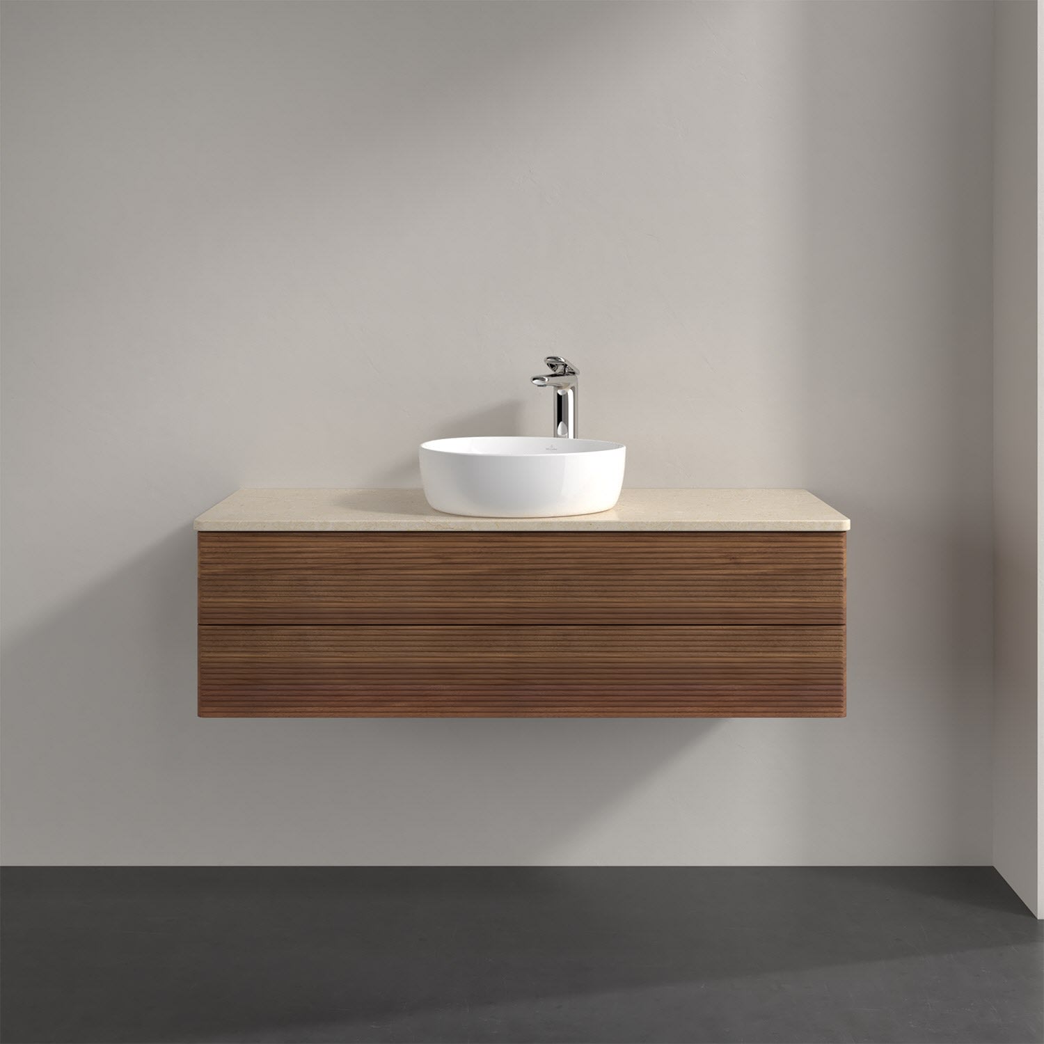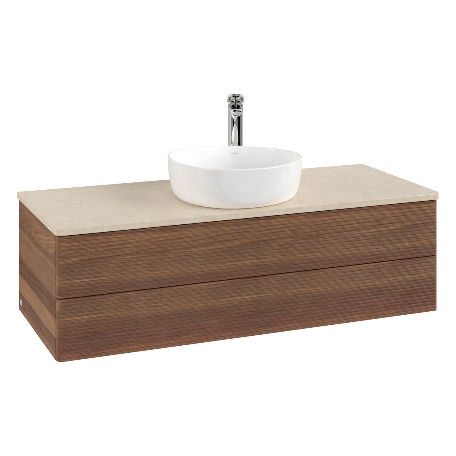 Villeroy & Boch Antao Waschbeckenunterschrank, 120 x 36 cm, 2 Auszüge mit LED-Licht, Front mit Struktur, mit Hahnloch, für Waschtisch mittig