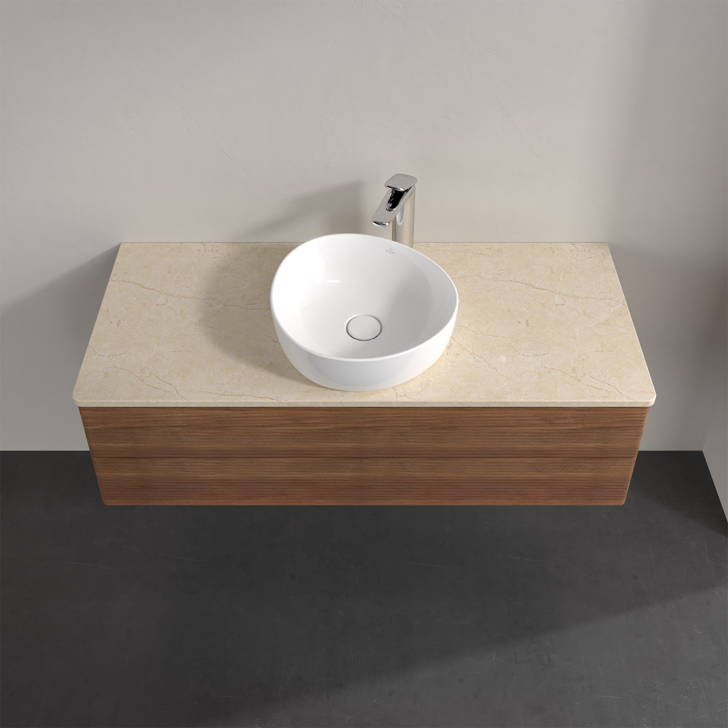 Für diesen Waschbeckenunterschrank stehen Ihnen Aufsatzwaschtische aus verschiedenen Serien zur Verfügung (siehe "Passliste" unter Downloads). Ein ausgewähltes Beispiel finden Sie im Zubehör. Den Waschtisch bitte separat mitbestellen.
