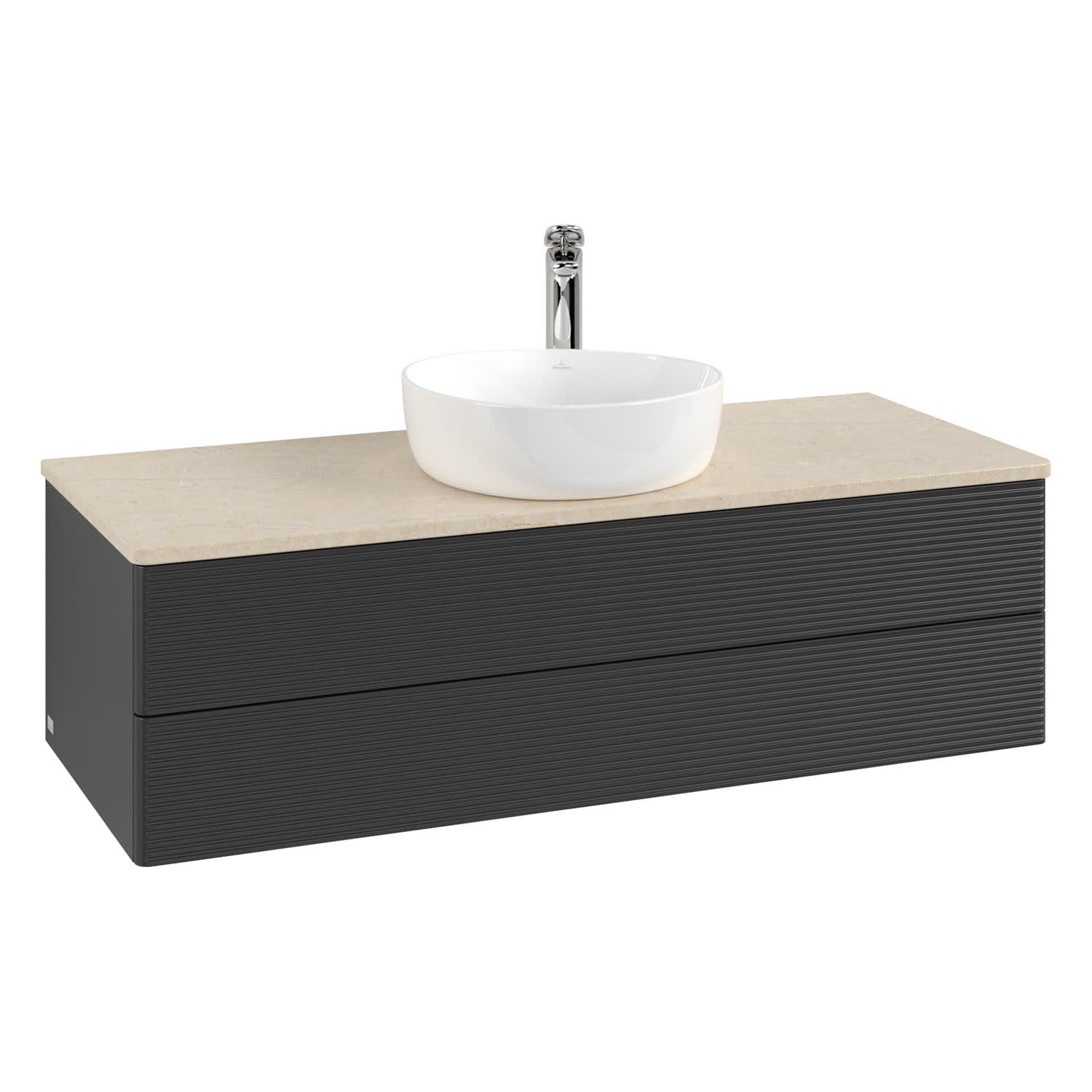 Villeroy & Boch Antao Waschbeckenunterschrank, 120 x 36 cm, 2 Auszüge mit LED-Licht, Front mit Struktur, mit Hahnloch, für Waschtisch mittig