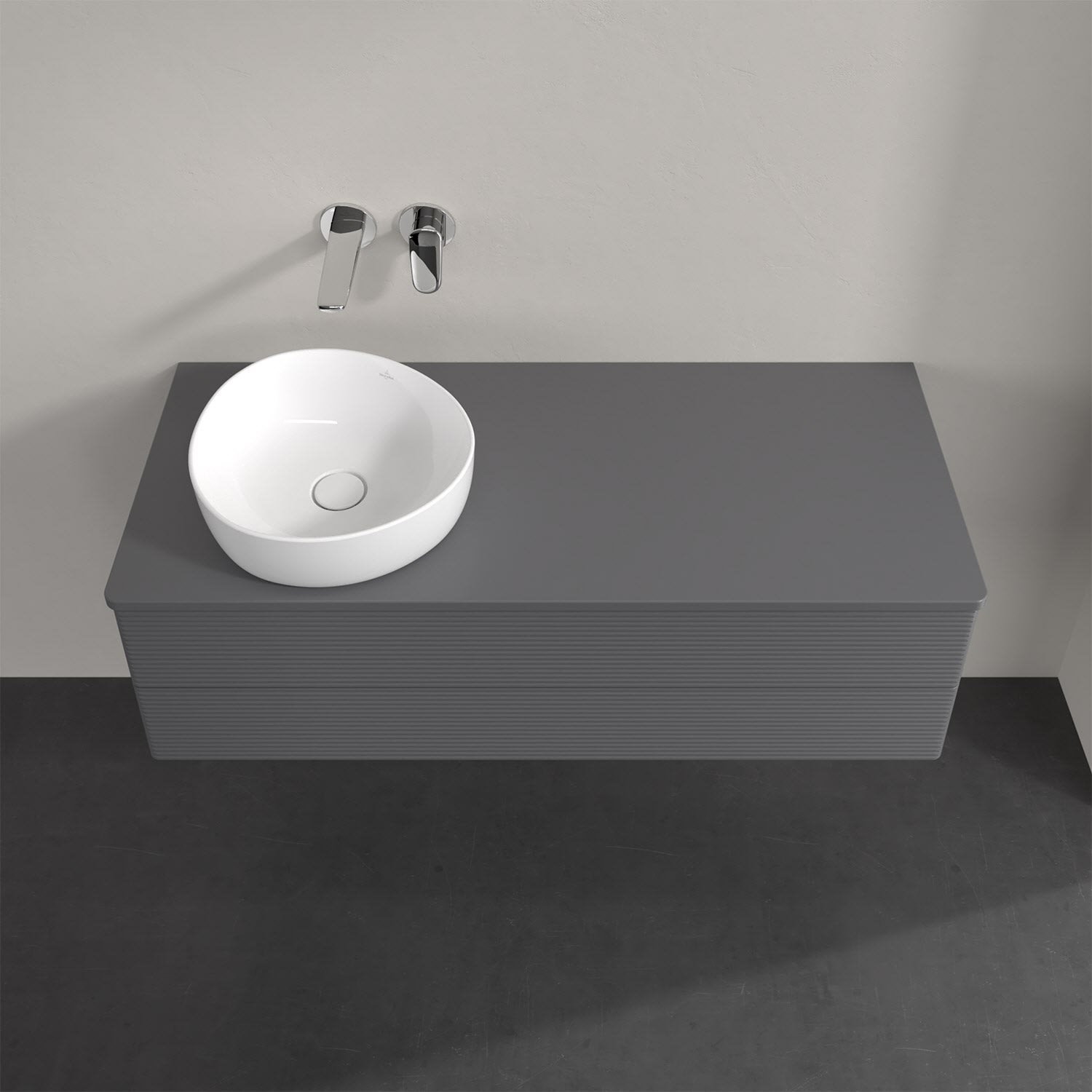 Für diesen Waschbeckenunterschrank stehen Ihnen Aufsatzwaschtische aus verschiedenen Serien zur Verfügung (siehe "Passliste" unter Downloads). Ein ausgewähltes Beispiel finden Sie im Zubehör. Den Waschtisch bitte separat mitbestellen.