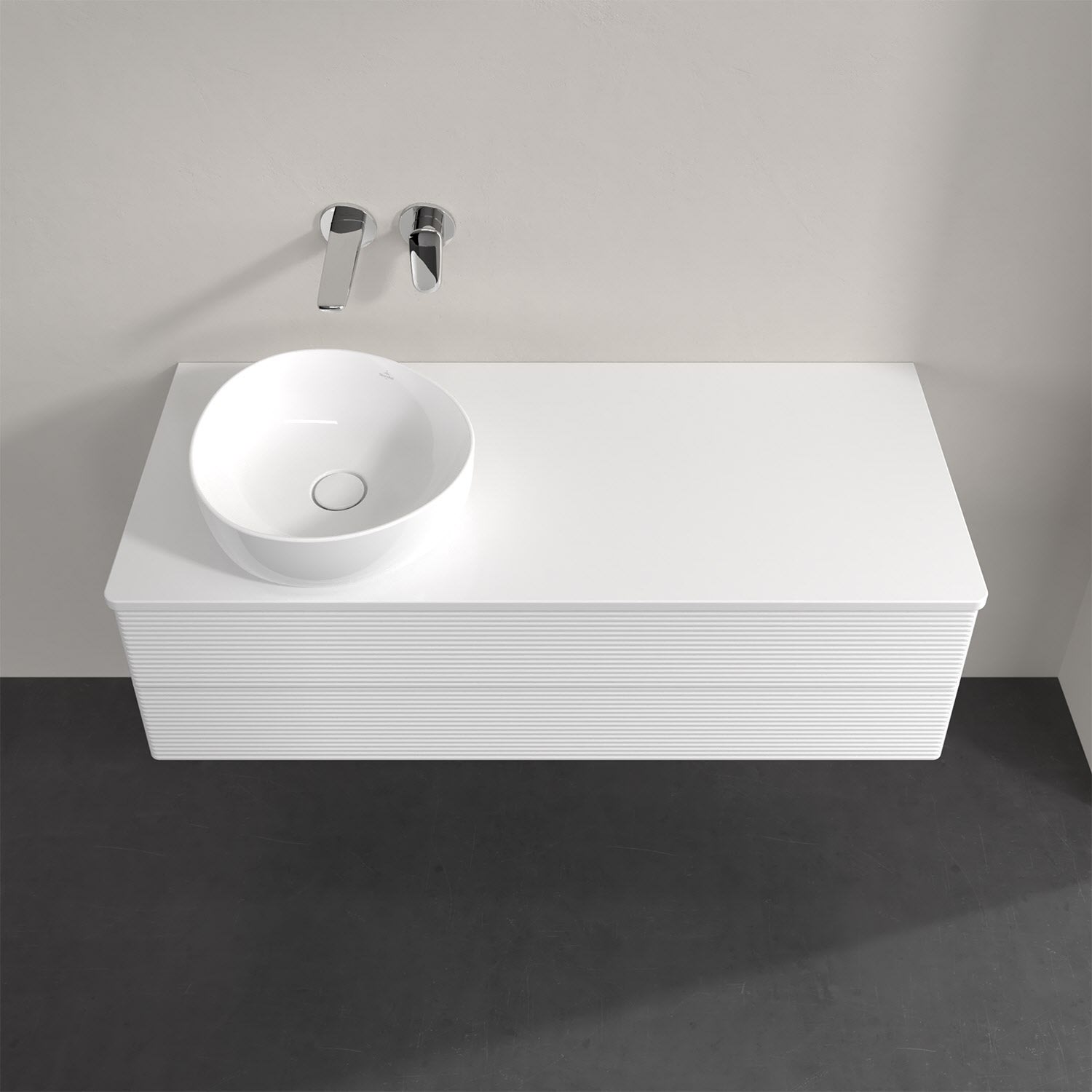 Villeroy & Boch Antao Waschbeckenunterschrank, 120 x 36 cm, 2 Auszüge mit LED-Licht, Front mit Struktur, mit Hahnloch, für Waschtisch links