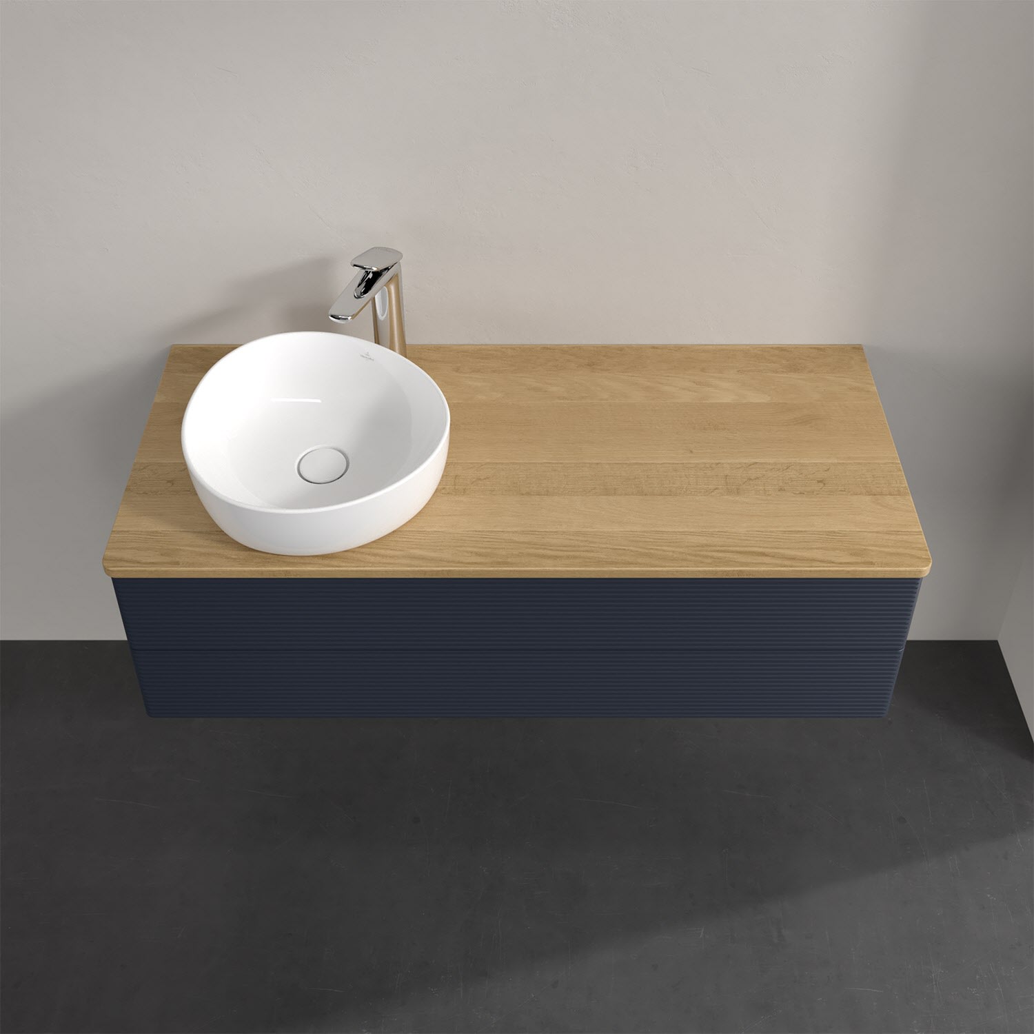 Villeroy & Boch Antao Waschbeckenunterschrank, 120 x 36 cm, 2 Auszüge mit LED-Licht, Front mit Struktur, mit Hahnloch, für Waschtisch links
