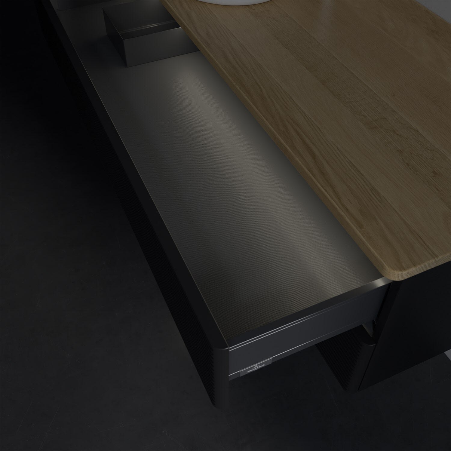 - in Schublade integrierte LED-Leiste mit warmweißem Licht zur Beleuchtung des Innenlebens
