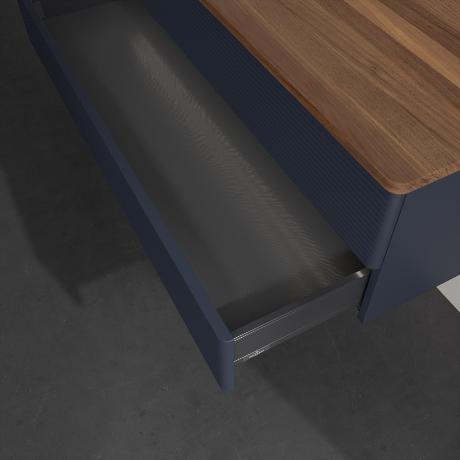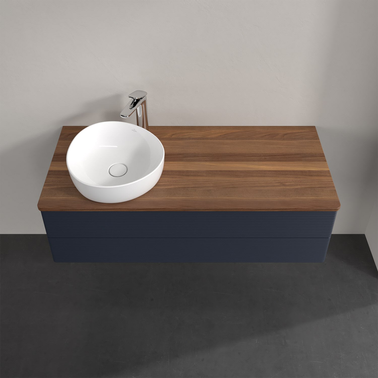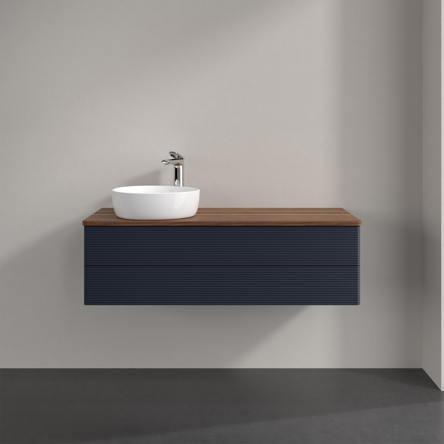 Villeroy & Boch Antao Waschbeckenunterschrank, 120 x 36 cm, 2 Auszüge mit LED-Licht, Front mit Struktur, mit Hahnloch, für Waschtisch links