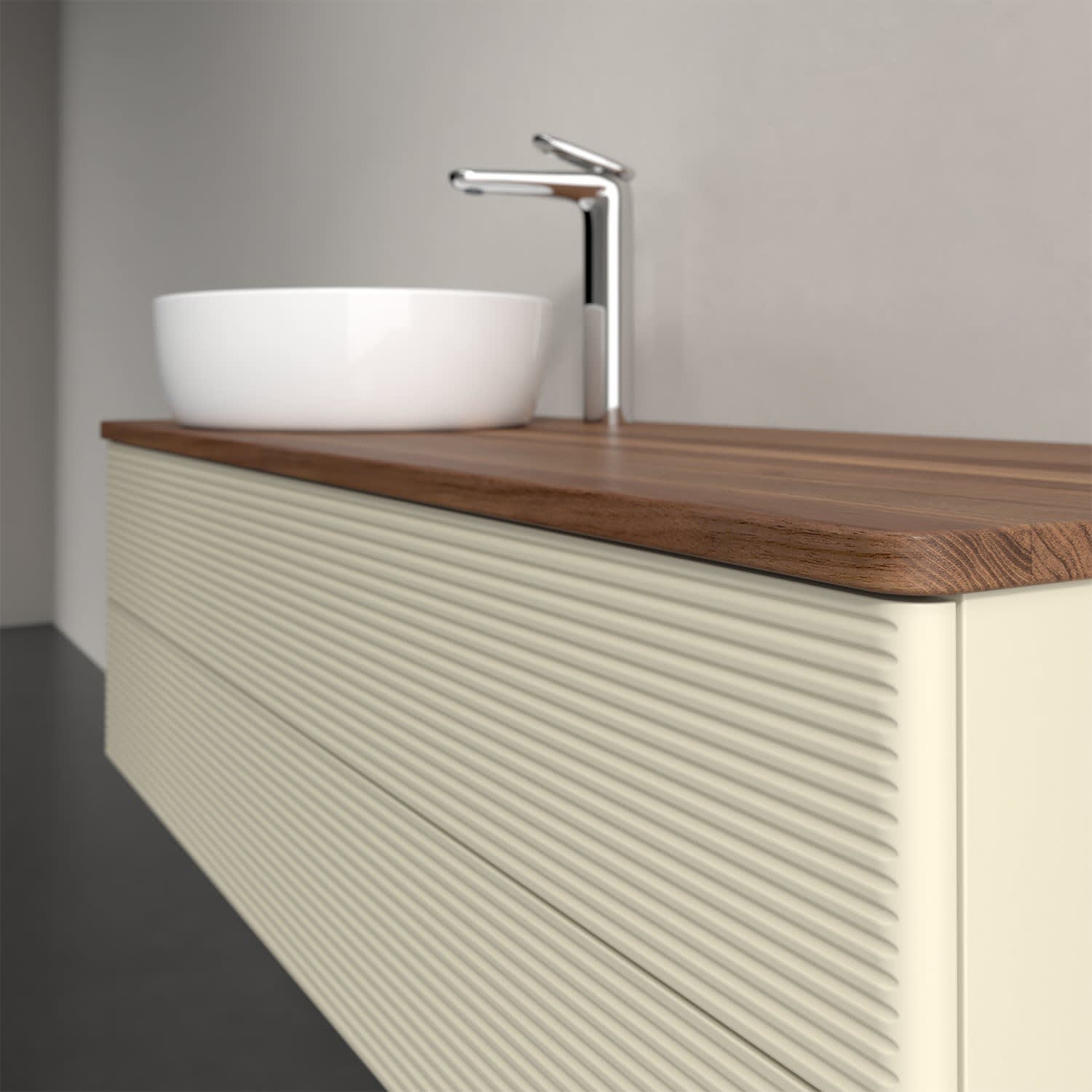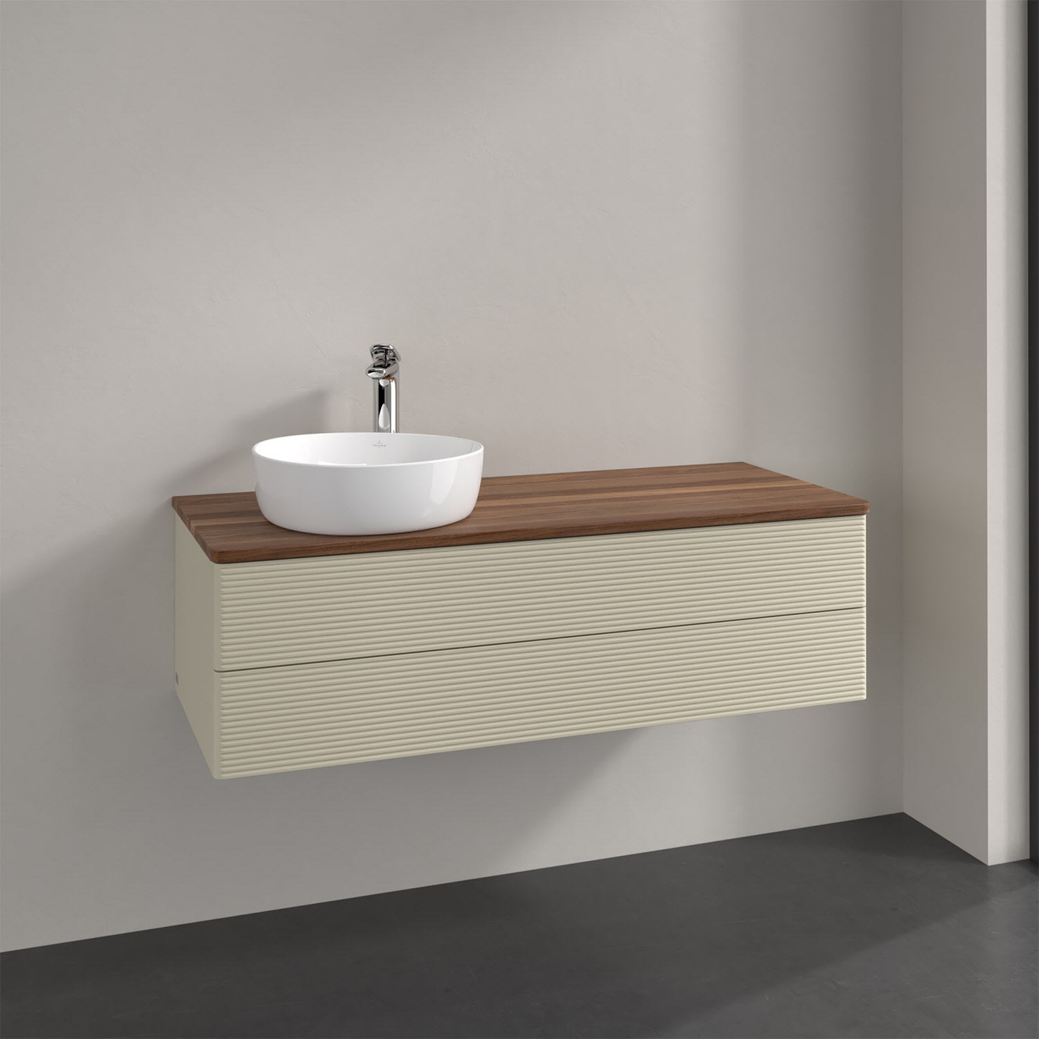 Für diesen Waschbeckenunterschrank stehen Ihnen Aufsatzwaschtische aus verschiedenen Serien zur Verfügung (siehe "Passliste" unter Downloads). Ein ausgewähltes Beispiel finden Sie im Zubehör. Den Waschtisch bitte separat mitbestellen.
