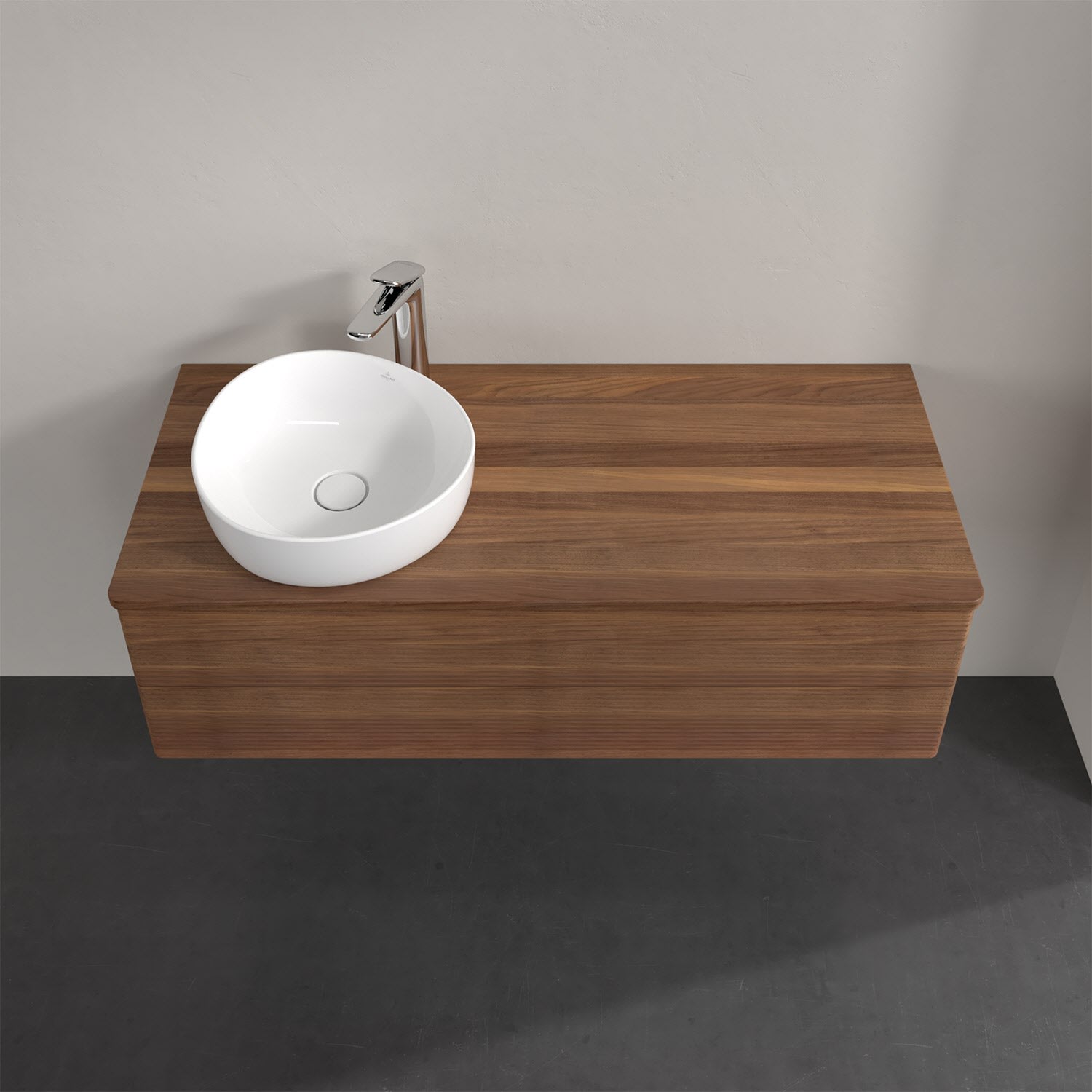 Villeroy & Boch Antao Waschbeckenunterschrank, 120 x 36 cm, 2 Auszüge mit LED-Licht, Front mit Struktur, mit Hahnloch, für Waschtisch links