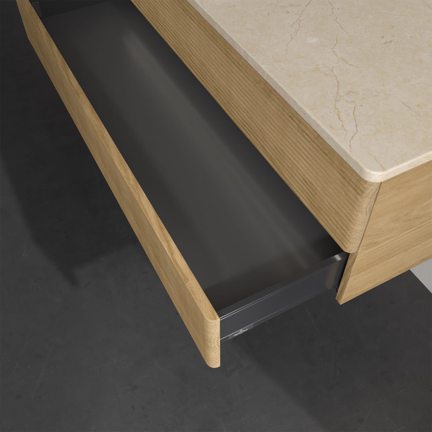 - kein Umfallen oder Verrutschen von Pflegeprodukten in den Schubladen dank rutschhemmendem Boden