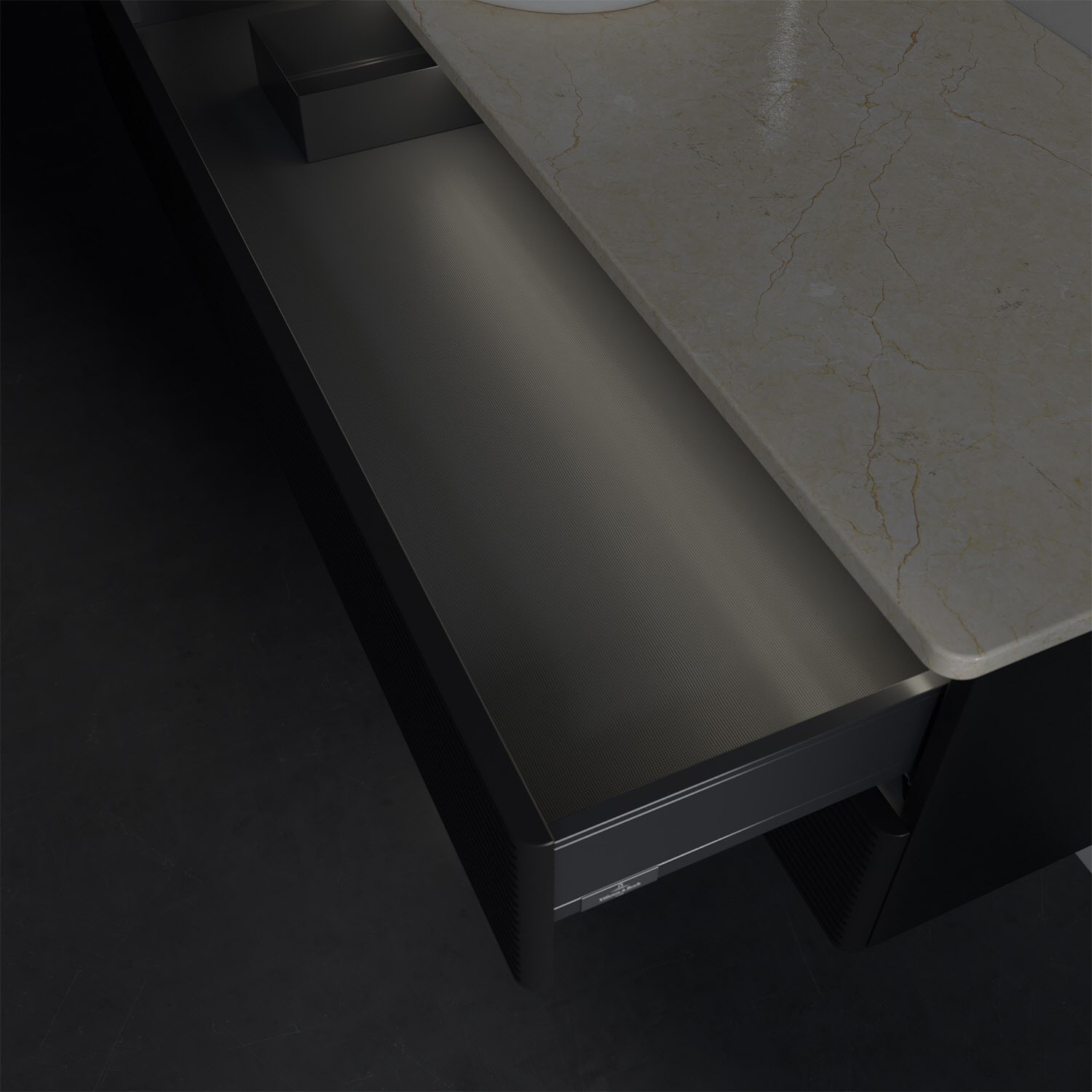 - kein Umfallen oder Verrutschen von Pflegeprodukten in den Schubladen dank rutschhemmendem Boden
