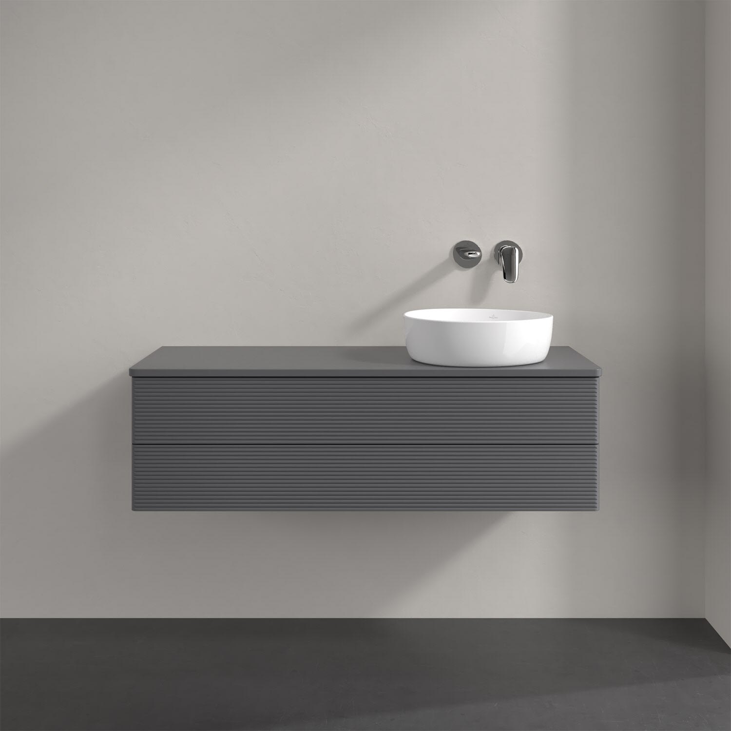 Villeroy & Boch Antao Waschbeckenunterschrank, 120 x 36 cm, 2 Auszüge mit LED-Licht, Front mit Struktur, mit Hahnloch, für Waschtisch rechts