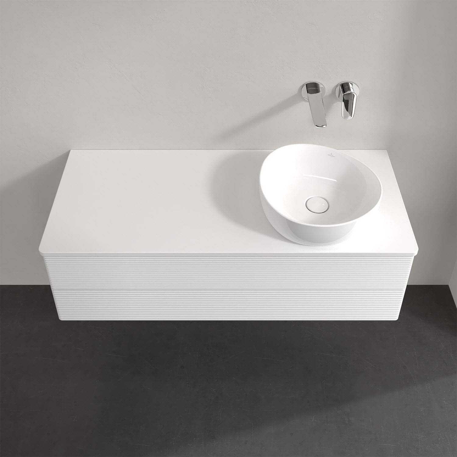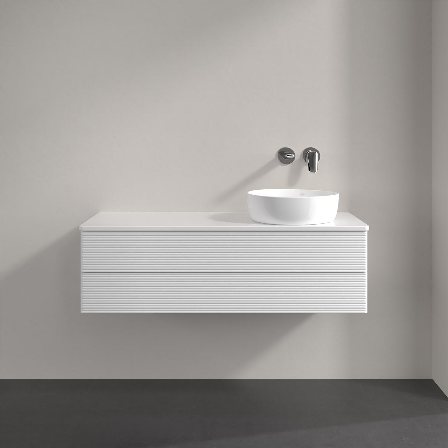 Villeroy & Boch Antao Waschbeckenunterschrank, 120 x 36 cm, 2 Auszüge mit LED-Licht, Front mit Struktur, mit Hahnloch, für Waschtisch rechts