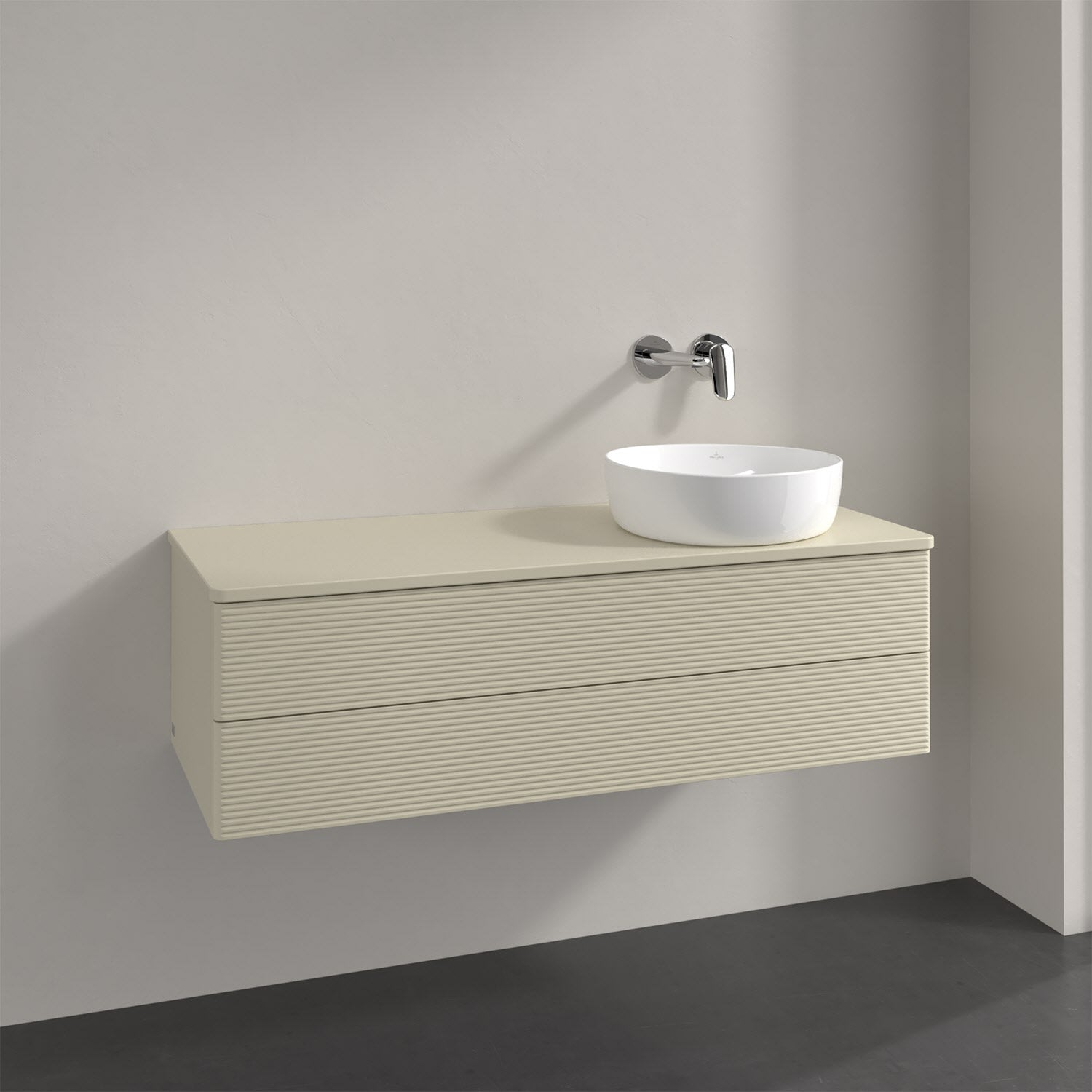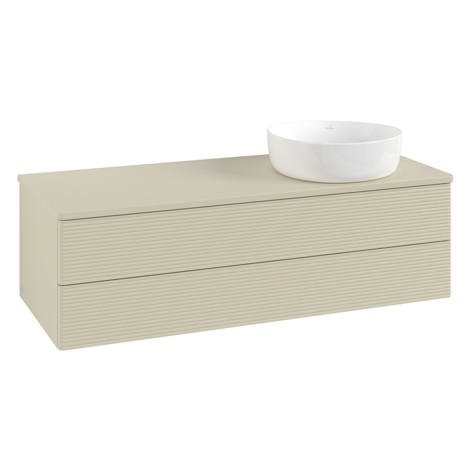 Villeroy & Boch Antao Waschbeckenunterschrank, 120 x 36 cm, 2 Auszüge mit LED-Licht, Front mit Struktur, mit Hahnloch, für Waschtisch rechts