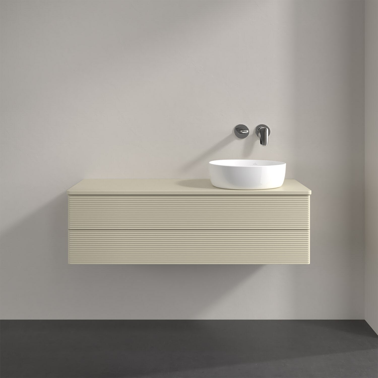 Für diesen Waschbeckenunterschrank stehen Ihnen Aufsatzwaschtische aus verschiedenen Serien zur Verfügung (siehe "Passliste" unter Downloads). Ein ausgewähltes Beispiel finden Sie im Zubehör. Den Waschtisch bitte separat mitbestellen.