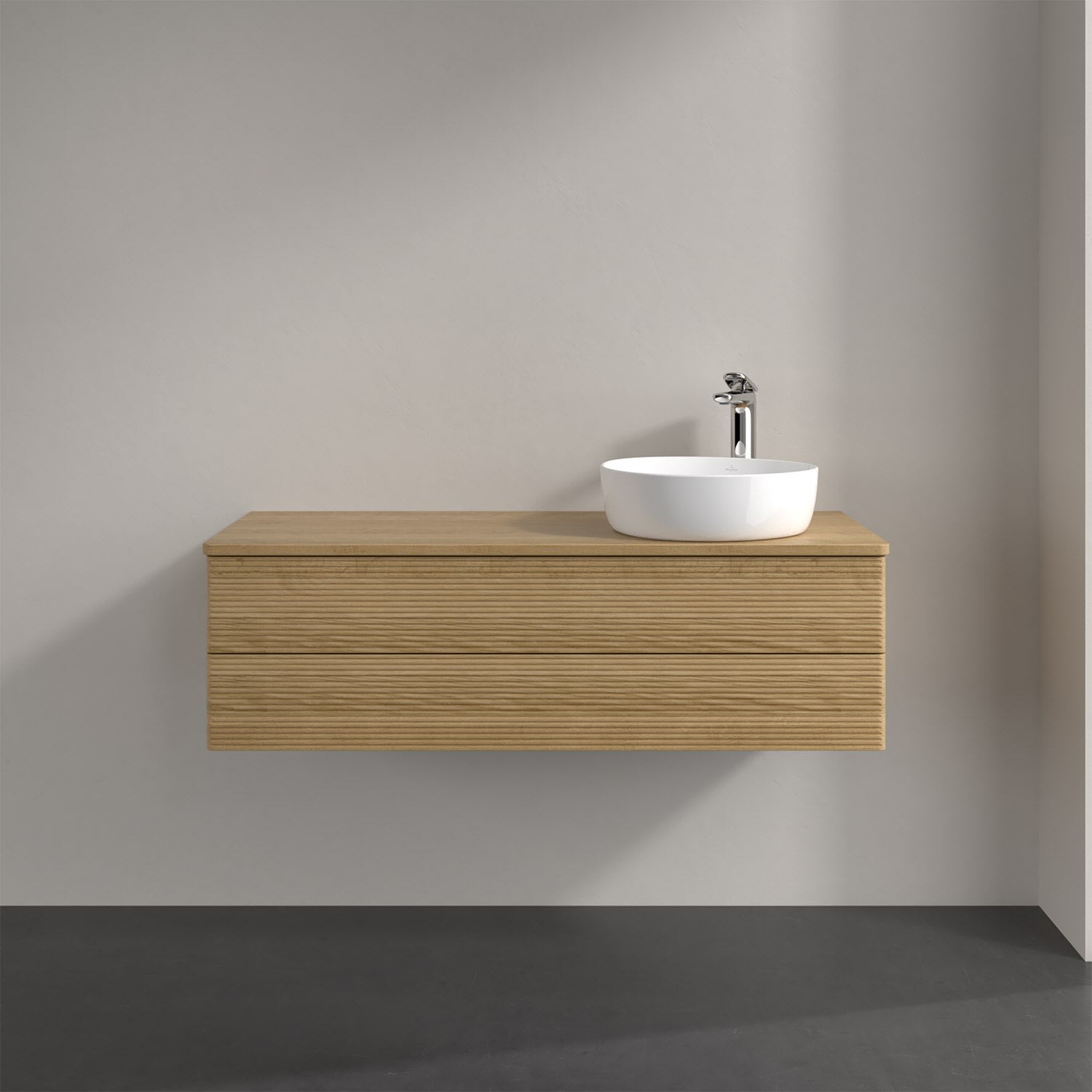 Villeroy & Boch Antao Waschbeckenunterschrank, 120 x 36 cm, 2 Auszüge mit LED-Licht, Front mit Struktur, mit Hahnloch, für Waschtisch rechts