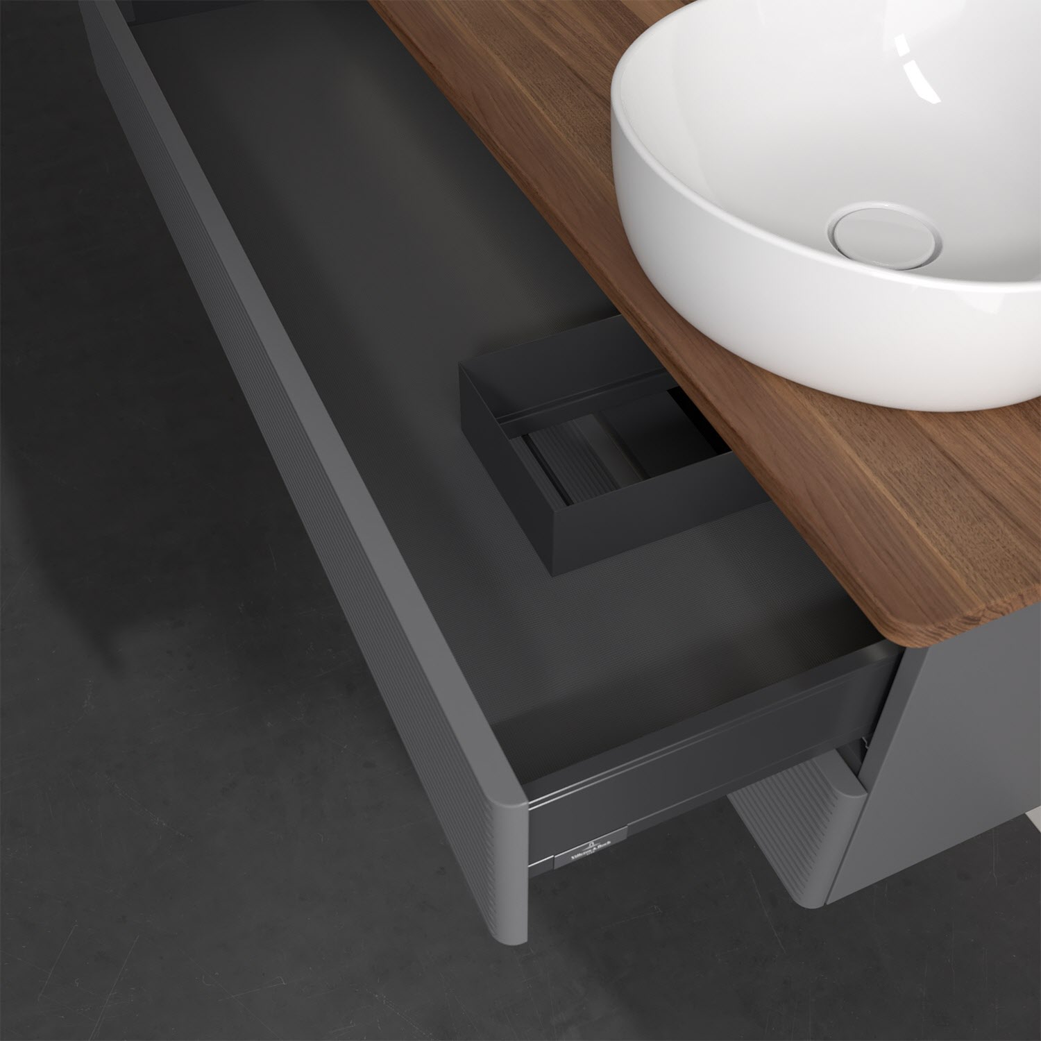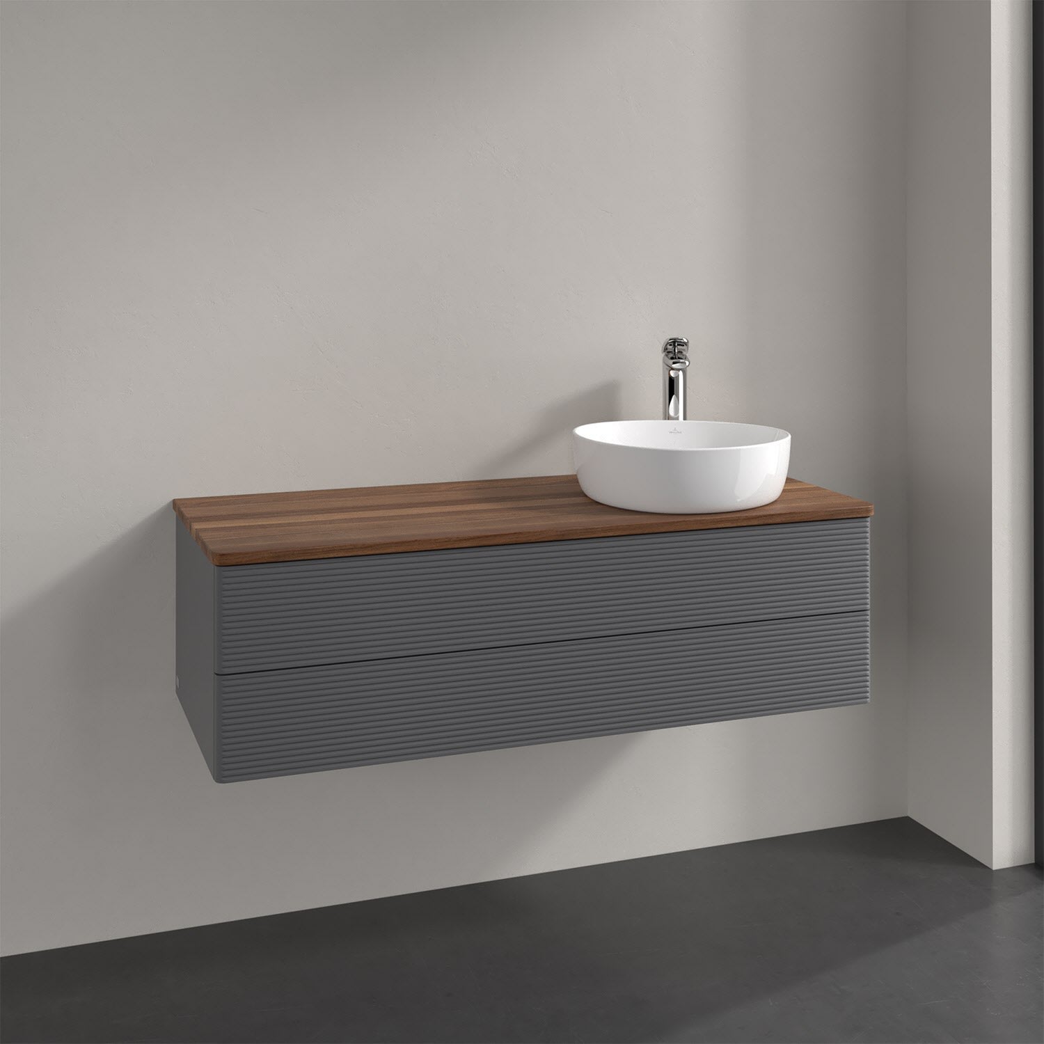 Villeroy & Boch Antao Waschbeckenunterschrank, 120 x 36 cm, 2 Auszüge mit LED-Licht, Front mit Struktur, mit Hahnloch, für Waschtisch rechts