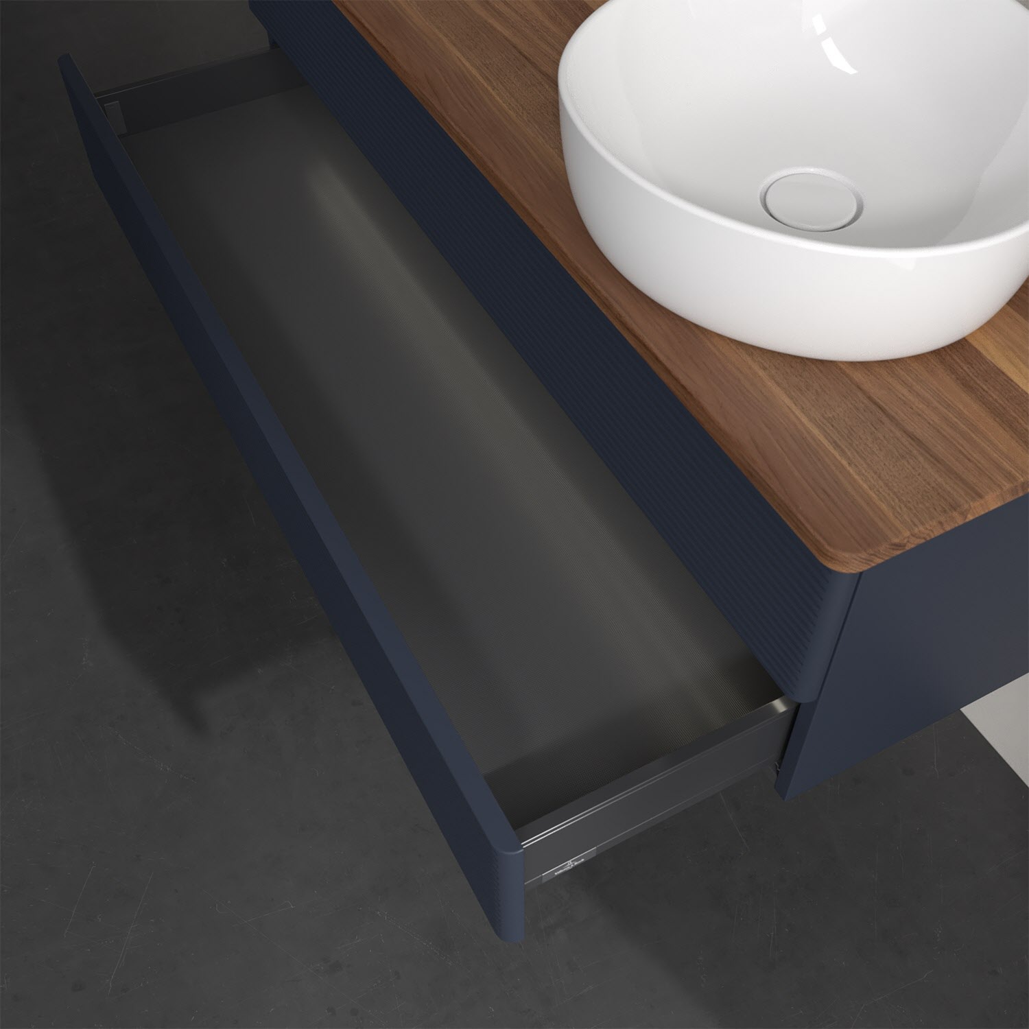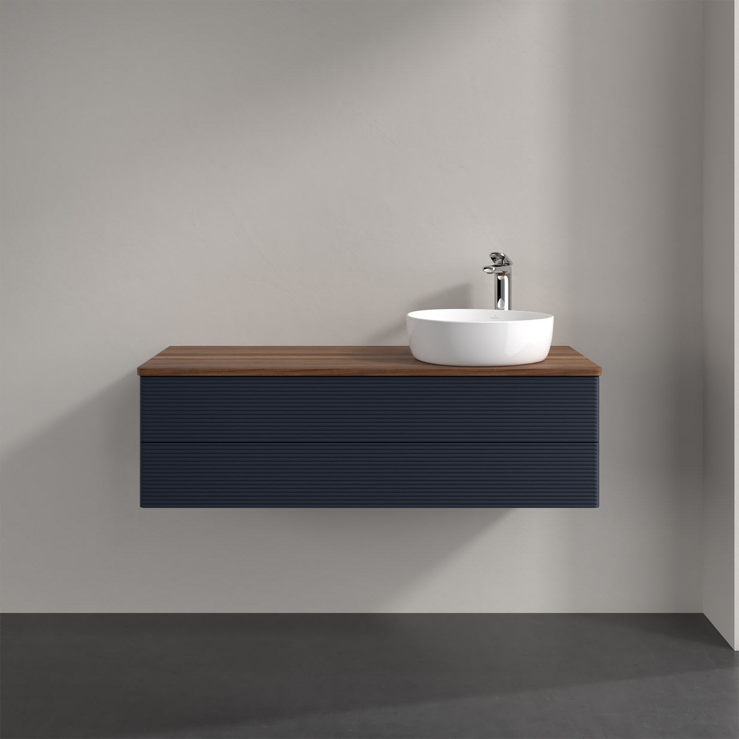 Villeroy & Boch Antao Waschbeckenunterschrank, 120 x 36 cm, 2 Auszüge mit LED-Licht, Front mit Struktur, mit Hahnloch, für Waschtisch rechts