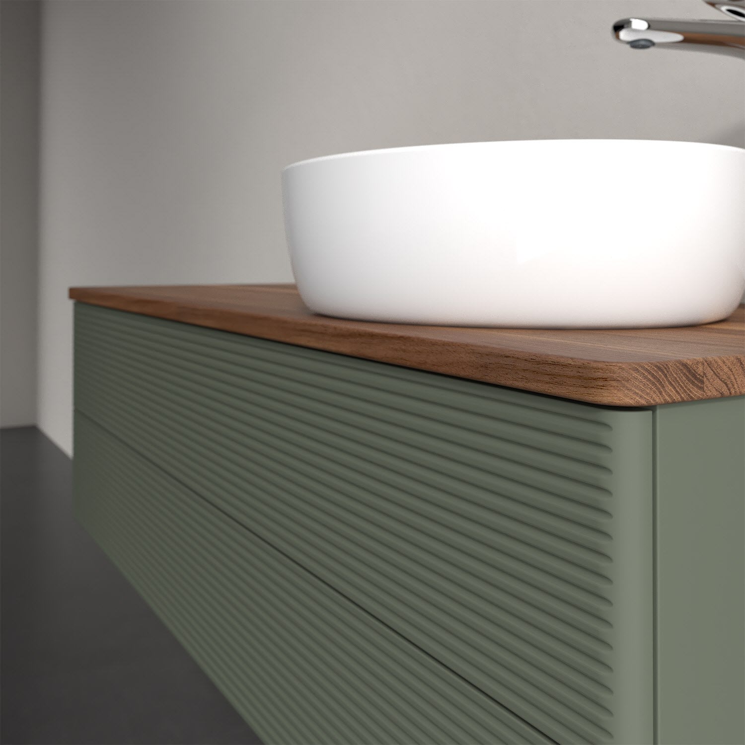 Für diesen Waschbeckenunterschrank stehen Ihnen Aufsatzwaschtische aus verschiedenen Serien zur Verfügung (siehe "Passliste" unter Downloads). Ein ausgewähltes Beispiel finden Sie im Zubehör. Den Waschtisch bitte separat mitbestellen.