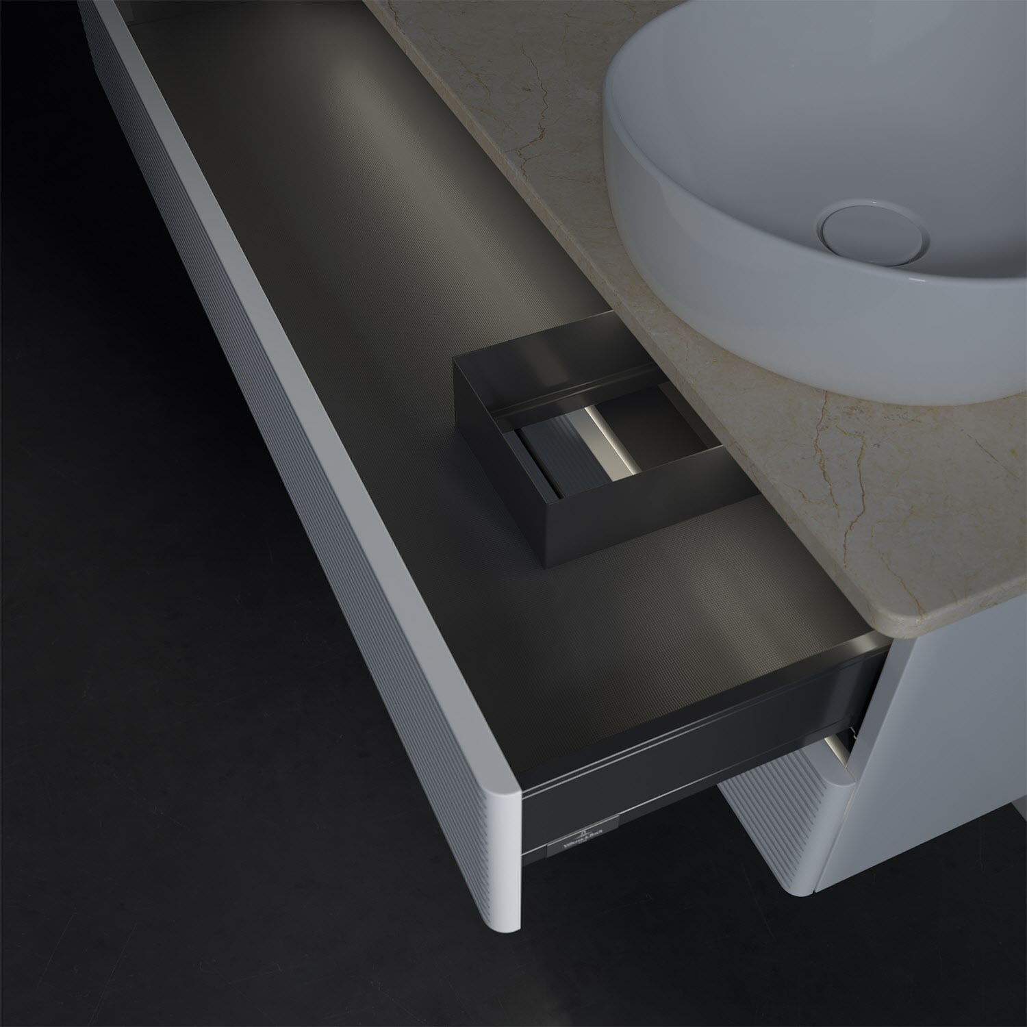 - kein Umfallen oder Verrutschen von Pflegeprodukten in den Schubladen dank rutschhemmendem Boden