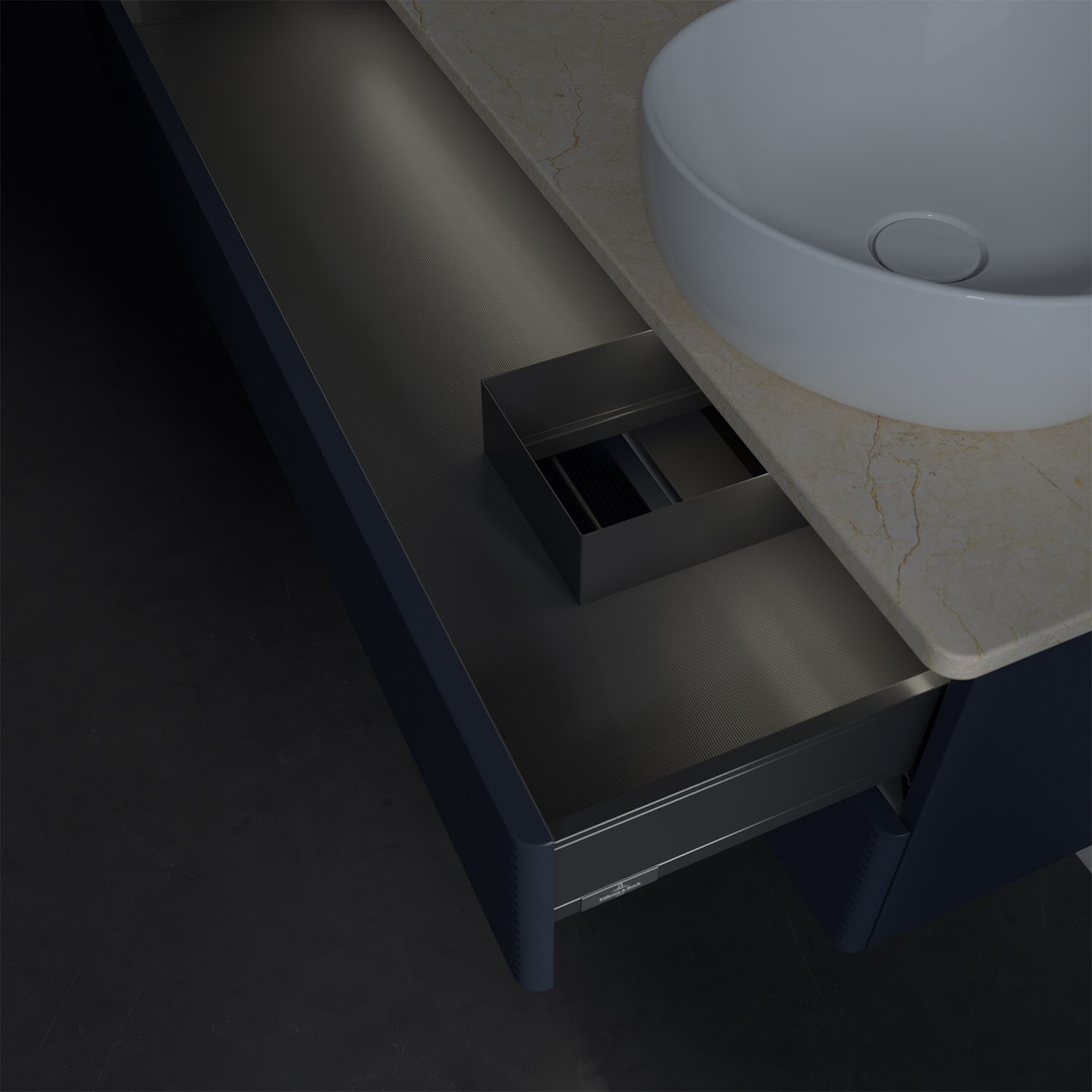 Villeroy & Boch Antao Waschbeckenunterschrank, 120 x 36 cm, 2 Auszüge mit LED-Licht, Front mit Struktur, mit Hahnloch, für Waschtisch rechts