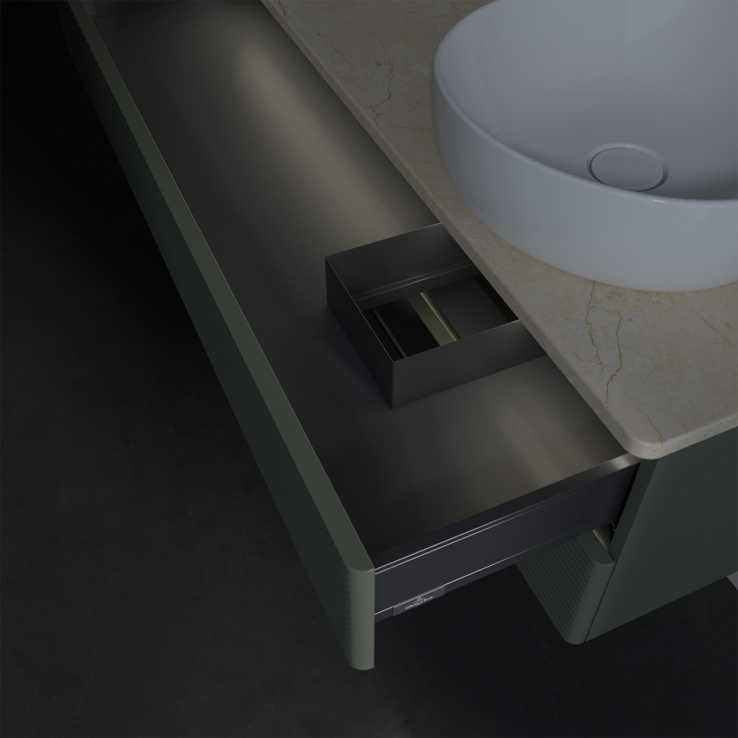 - kein Umfallen oder Verrutschen von Pflegeprodukten in den Schubladen dank rutschhemmendem Boden