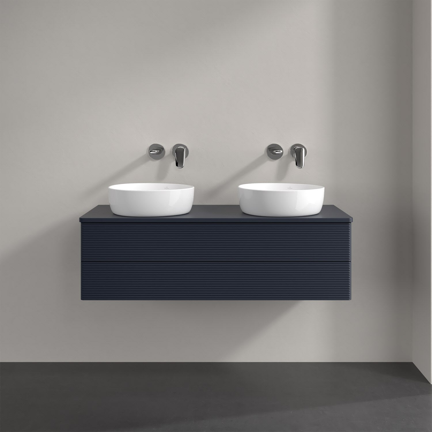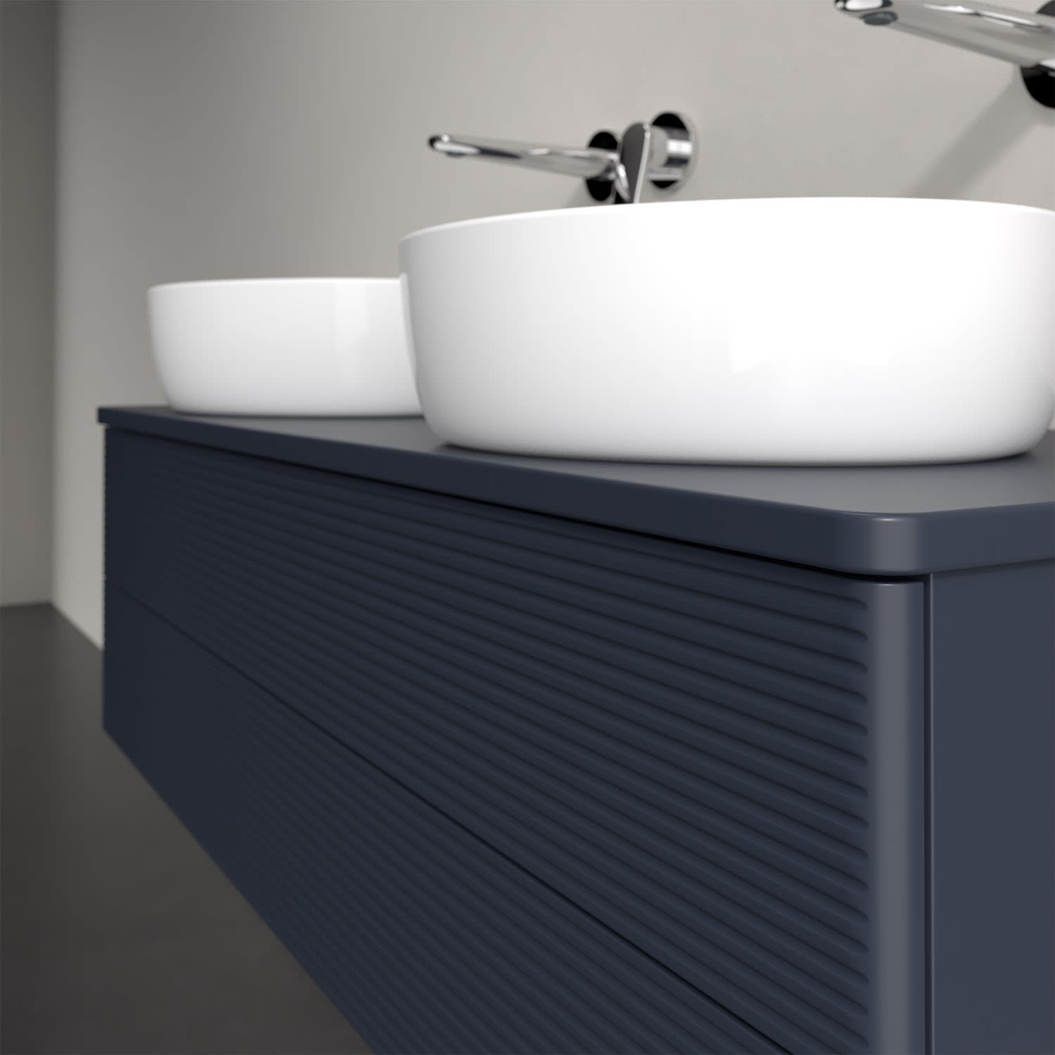 Der wandhängende Antao Waschtischunterschrank von Villeroy & Boch bietet nicht nur jede Menge Stauraum – er ist dank seines naturinspirierten Designs mit seinen abgerundeten Kanten auch noch besonders stilvoll und schafft eine gemütliche Atmosphäre im Badezimmer. Kombiniert mit zwei passenden Aufsatzwaschtischen also die ideale Wahl. Zwei geräumige Auszüge bieten viel Platz, um alles Notwendige zu verstauen und Ordnung zu halten. Öffnen lassen sie sich durch leichten Druck auf die strukturierte Front. Dabei aktiviert sich übrigens die Auszugsbeleuchtung in angenehmem Warmweiß. Dank Vollauszug hat man immer alles im Blick und der Antirutschboden verhindert ein Umfallen oder Verrutschen der Gegenstände. Einfach clever! Für eine besonders leichte Pflege sorgt die mehrschichtig deckend lackierte Oberfläche.