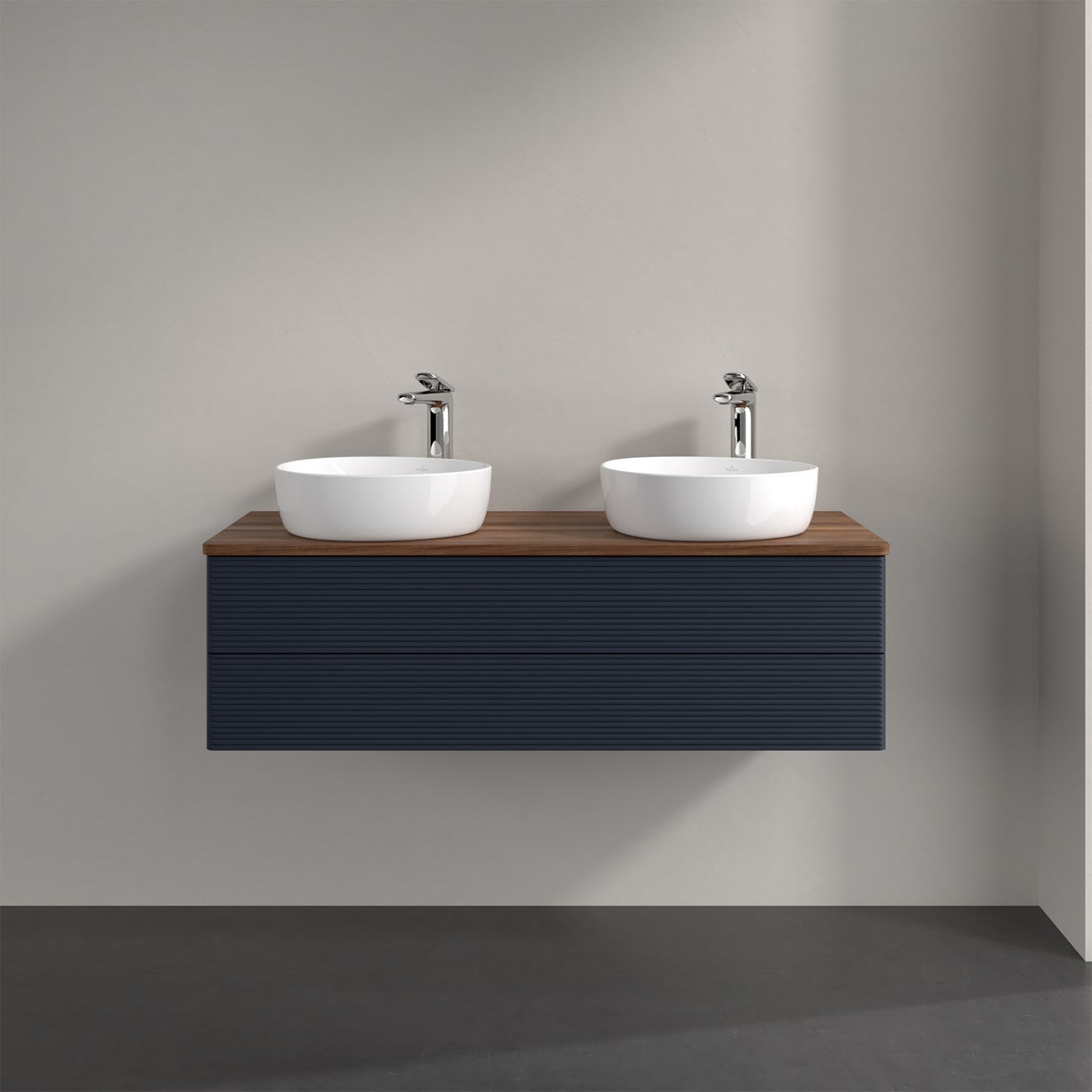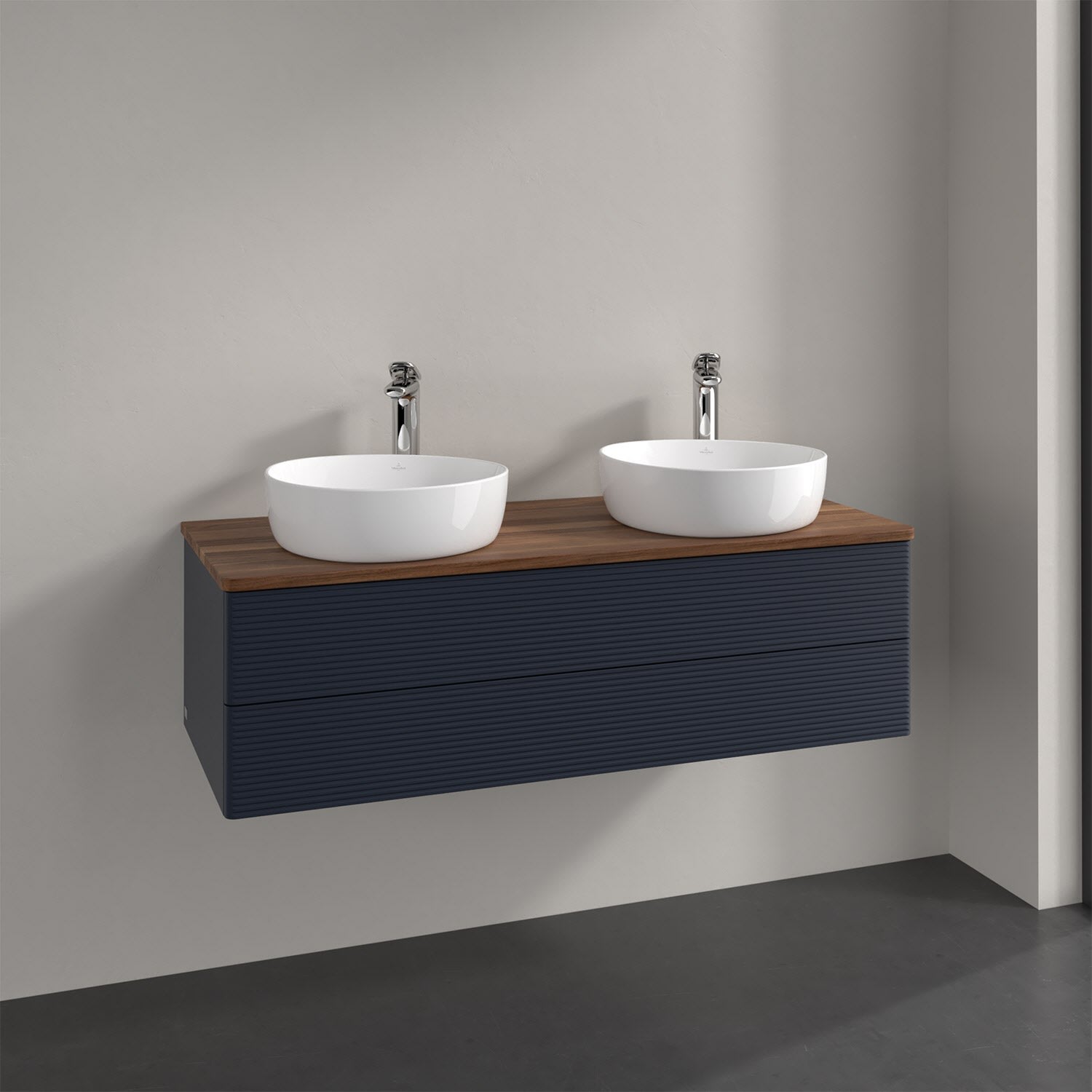 Der wandhängende Antao Waschtischunterschrank von Villeroy & Boch bietet nicht nur jede Menge Stauraum – er ist dank seines naturinspirierten Designs mit seinen abgerundeten Kanten auch noch besonders stilvoll und schafft eine gemütliche Atmosphäre im Badezimmer. Kombiniert mit zwei passenden Aufsatzwaschtischen also die ideale Wahl. Zwei geräumige Auszüge bieten viel Platz, um alles Notwendige zu verstauen und Ordnung zu halten. Öffnen lassen sie sich durch leichten Druck auf die strukturierte Front. Dabei aktiviert sich übrigens die Auszugsbeleuchtung in angenehmem Warmweiß. Dank Vollauszug hat man immer alles im Blick und der Antirutschboden verhindert ein Umfallen oder Verrutschen der Gegenstände. Einfach clever! Für eine besonders leichte Pflege sorgt die mehrschichtig deckend lackierte Oberfläche. Bei der Ausführung in Massivholz wird dank des verarbeiteten Massivholzes jedes Möbel zu einem Unikat, das sich durch das lebendige Naturmaterial durch seine einzigartige Struktur und Maserung auszeichnet.