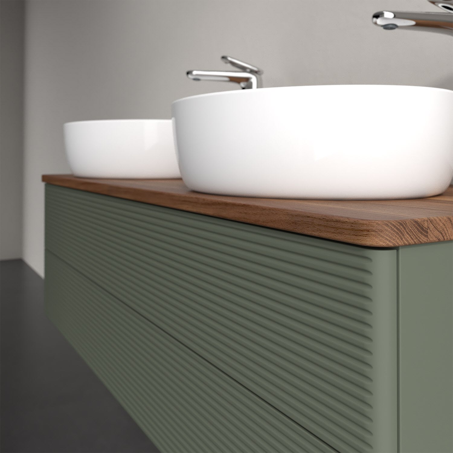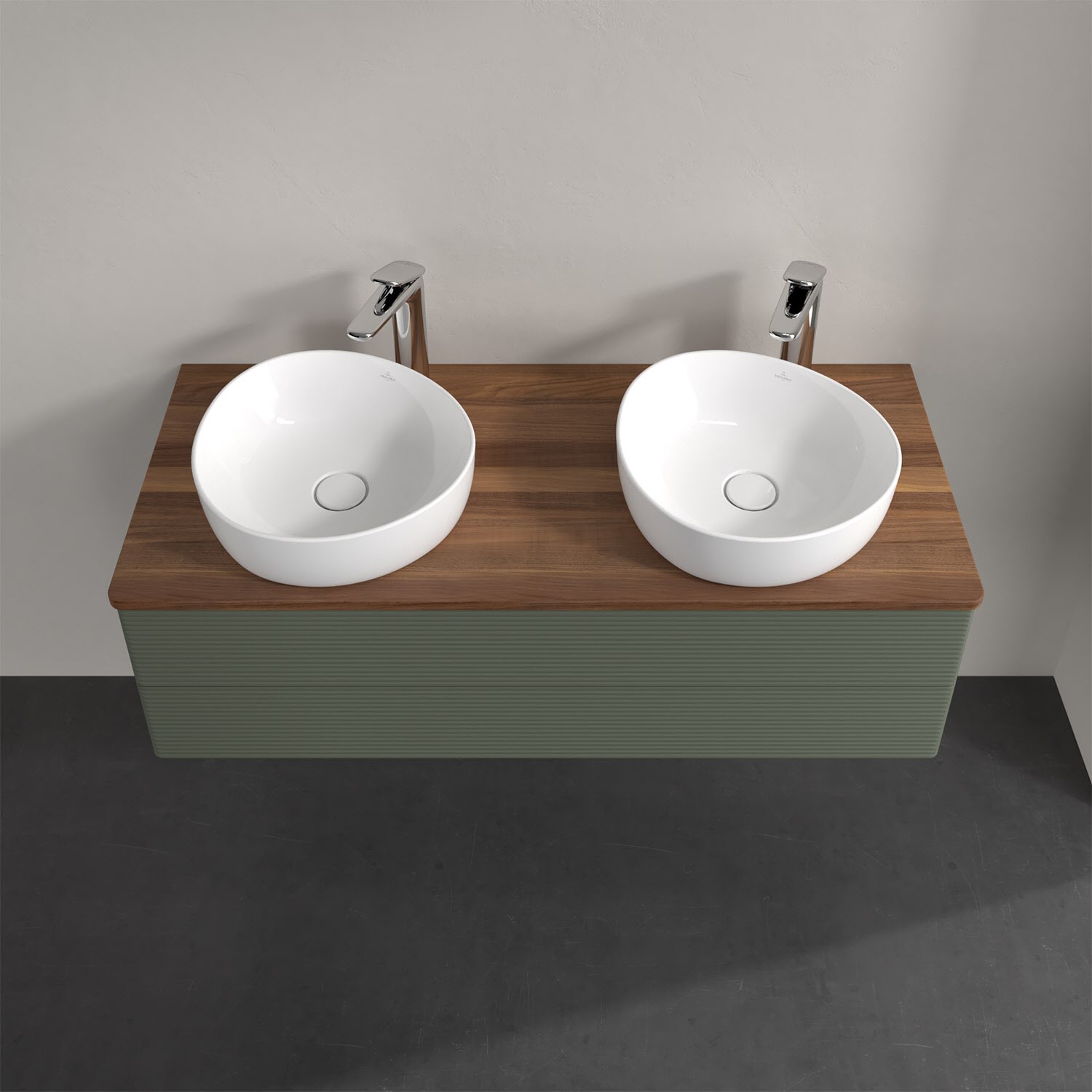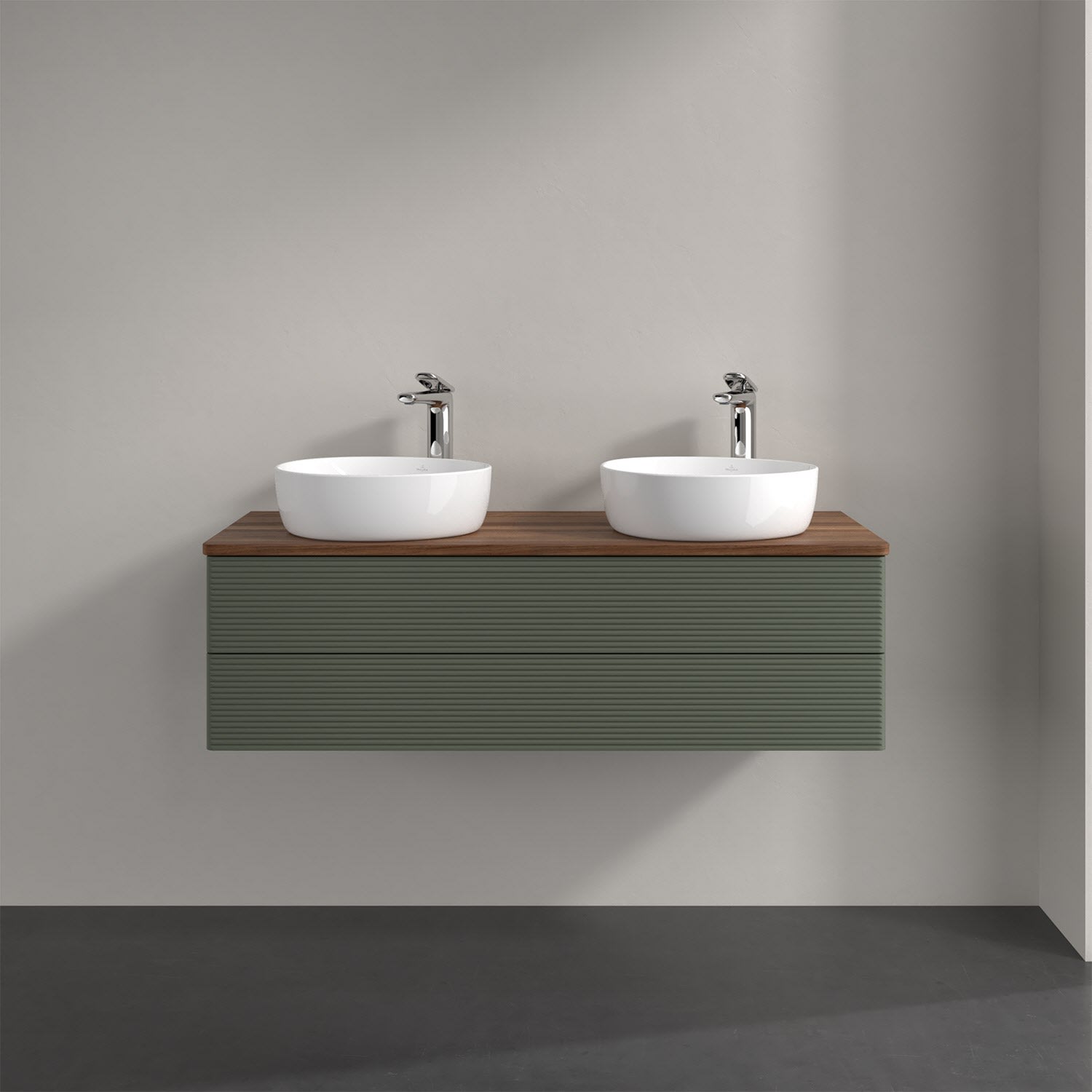 Der wandhängende Antao Waschtischunterschrank von Villeroy & Boch bietet nicht nur jede Menge Stauraum – er ist dank seines naturinspirierten Designs mit seinen abgerundeten Kanten auch noch besonders stilvoll und schafft eine gemütliche Atmosphäre im Badezimmer. Kombiniert mit zwei passenden Aufsatzwaschtischen also die ideale Wahl. Zwei geräumige Auszüge bieten viel Platz, um alles Notwendige zu verstauen und Ordnung zu halten. Öffnen lassen sie sich durch leichten Druck auf die strukturierte Front. Dabei aktiviert sich übrigens die Auszugsbeleuchtung in angenehmem Warmweiß. Dank Vollauszug hat man immer alles im Blick und der Antirutschboden verhindert ein Umfallen oder Verrutschen der Gegenstände. Einfach clever! Für eine besonders leichte Pflege sorgt die mehrschichtig deckend lackierte Oberfläche. Bei der Ausführung in Massivholz wird dank des verarbeiteten Massivholzes jedes Möbel zu einem Unikat, das sich durch das lebendige Naturmaterial durch seine einzigartige Struktur und Maserung auszeichnet.