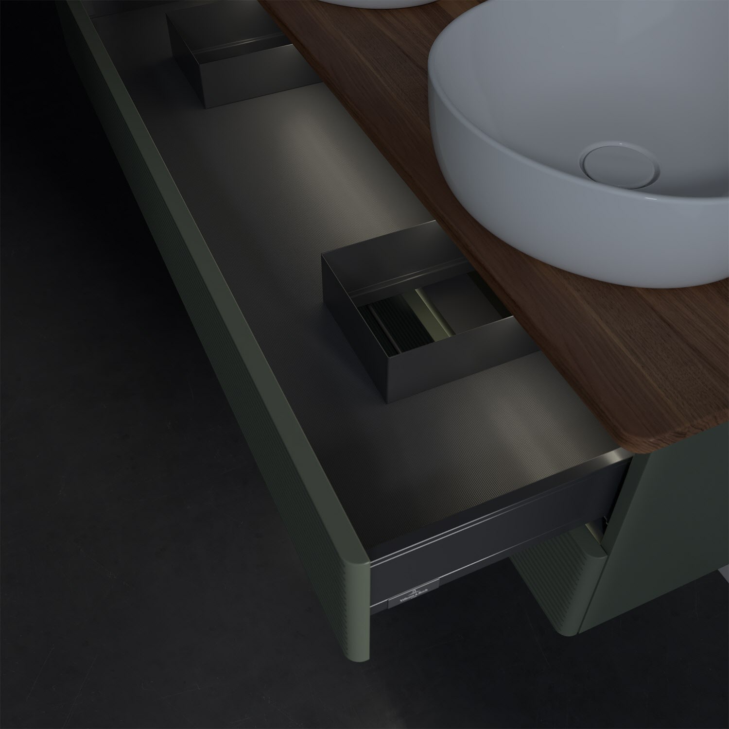 - kein Umfallen oder Verrutschen von Pflegeprodukten in den Schubladen dank rutschhemmendem Boden