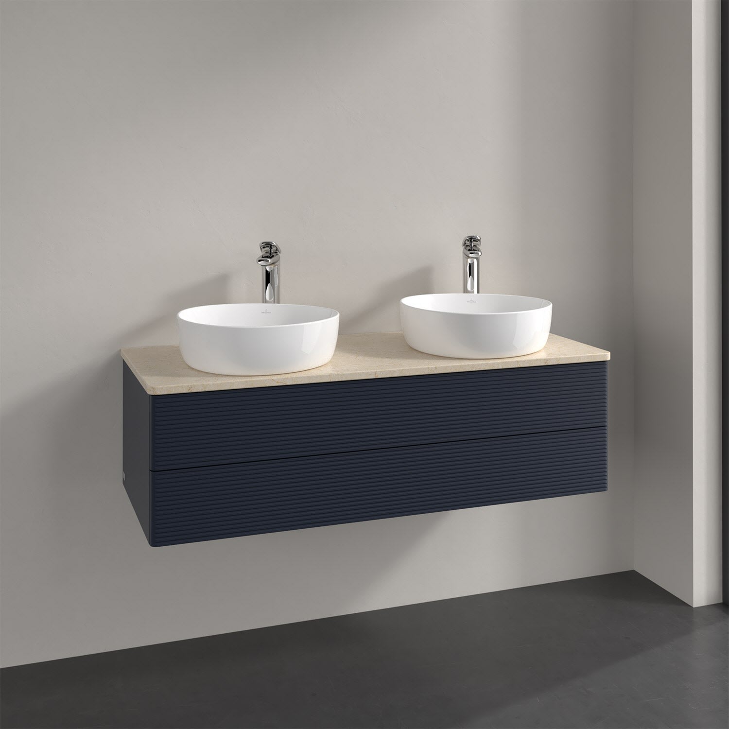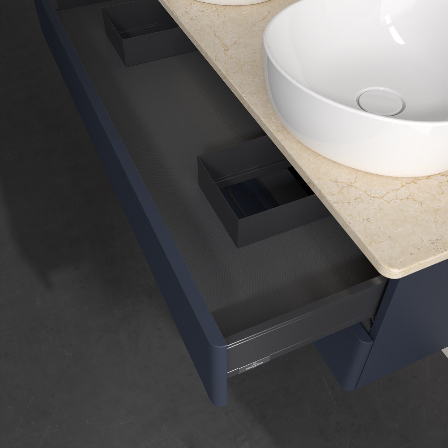 Villeroy & Boch Antao Waschbeckenunterschrank, 120 x 36 cm, 2 Auszüge mit LED-Licht, Front mit Struktur, mit Hahnloch, für Waschtisch links und rechts