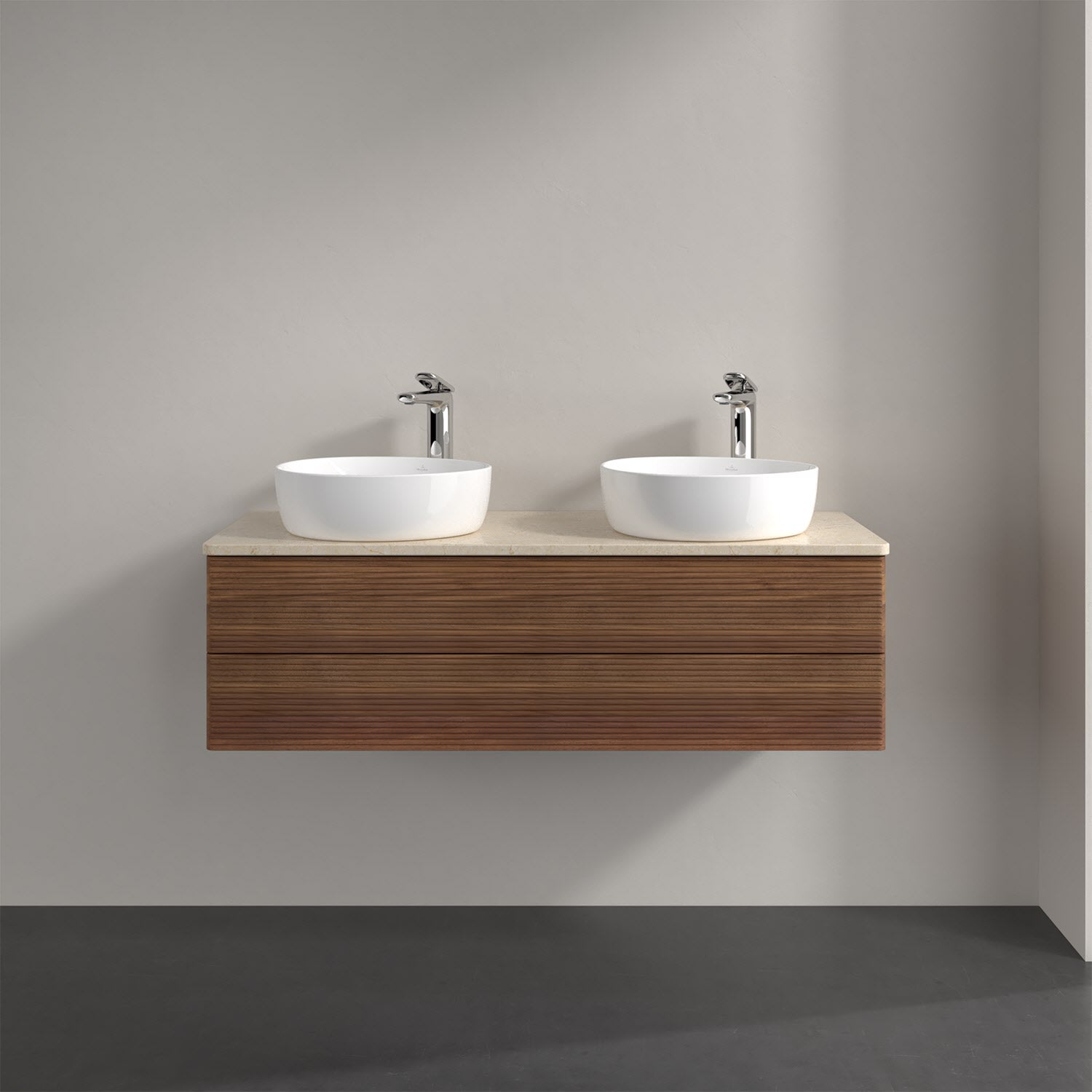 Villeroy & Boch Antao Waschbeckenunterschrank, 120 x 36 cm, 2 Auszüge mit LED-Licht, Front mit Struktur, mit Hahnloch, für Waschtisch links und rechts