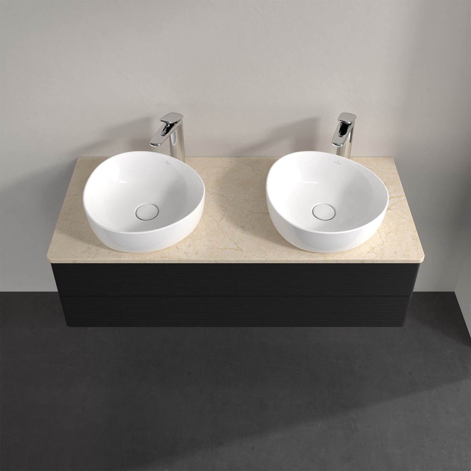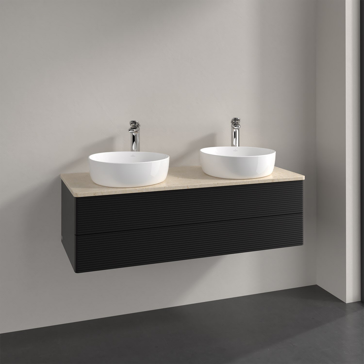 Der wandhängende Antao Waschtischunterschrank von Villeroy & Boch bietet nicht nur jede Menge Stauraum – er ist dank seines naturinspirierten Designs mit seinen abgerundeten Kanten auch noch besonders stilvoll und schafft eine gemütliche Atmosphäre im Badezimmer. Kombiniert mit zwei passenden Aufsatzwaschtischen also die ideale Wahl. Zwei geräumige Auszüge bieten viel Platz, um alles Notwendige zu verstauen und Ordnung zu halten. Öffnen lassen sie sich durch leichten Druck auf die strukturierte Front. Dabei aktiviert sich übrigens die Auszugsbeleuchtung in angenehmem Warmweiß. Dank Vollauszug hat man immer alles im Blick und der Antirutschboden verhindert ein Umfallen oder Verrutschen der Gegenstände. Einfach clever! Für eine besonders leichte Pflege sorgt die mehrschichtig deckend lackierte Oberfläche. Bei der Ausführung in Massivholz wird dank des verarbeiteten Massivholzes jedes Möbel zu einem Unikat, das sich durch das lebendige Naturmaterial durch seine einzigartige Struktur und Maserung auszeichnet.
