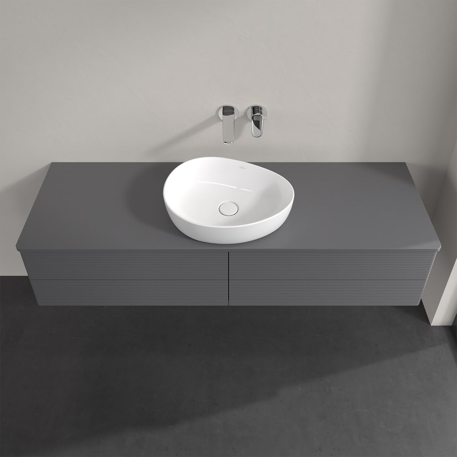 Villeroy & Boch Antao Waschbeckenunterschrank, 160 x 36 cm, 4 Auszüge mit LED-Licht, Front mit Struktur, mit Hahnloch, für Waschtisch mittig