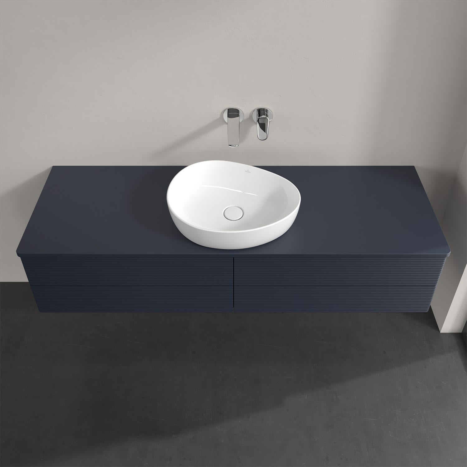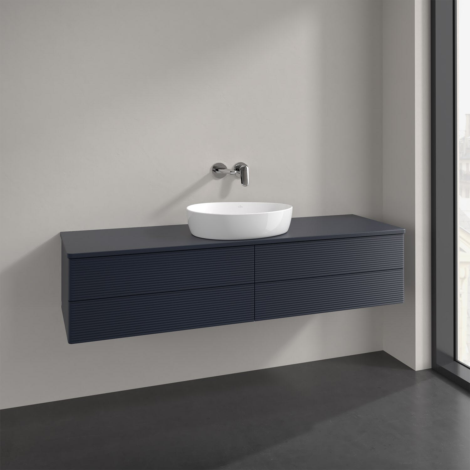 Villeroy & Boch Antao Waschbeckenunterschrank, 160 x 36 cm, 4 Auszüge mit LED-Licht, Front mit Struktur, mit Hahnloch, für Waschtisch mittig