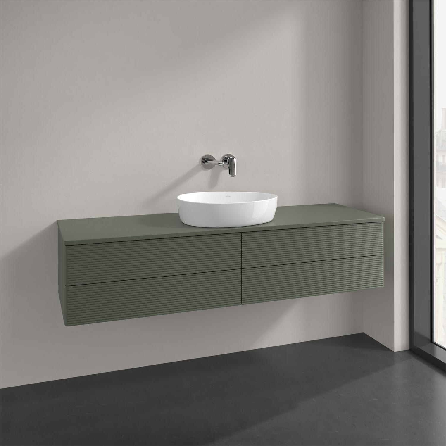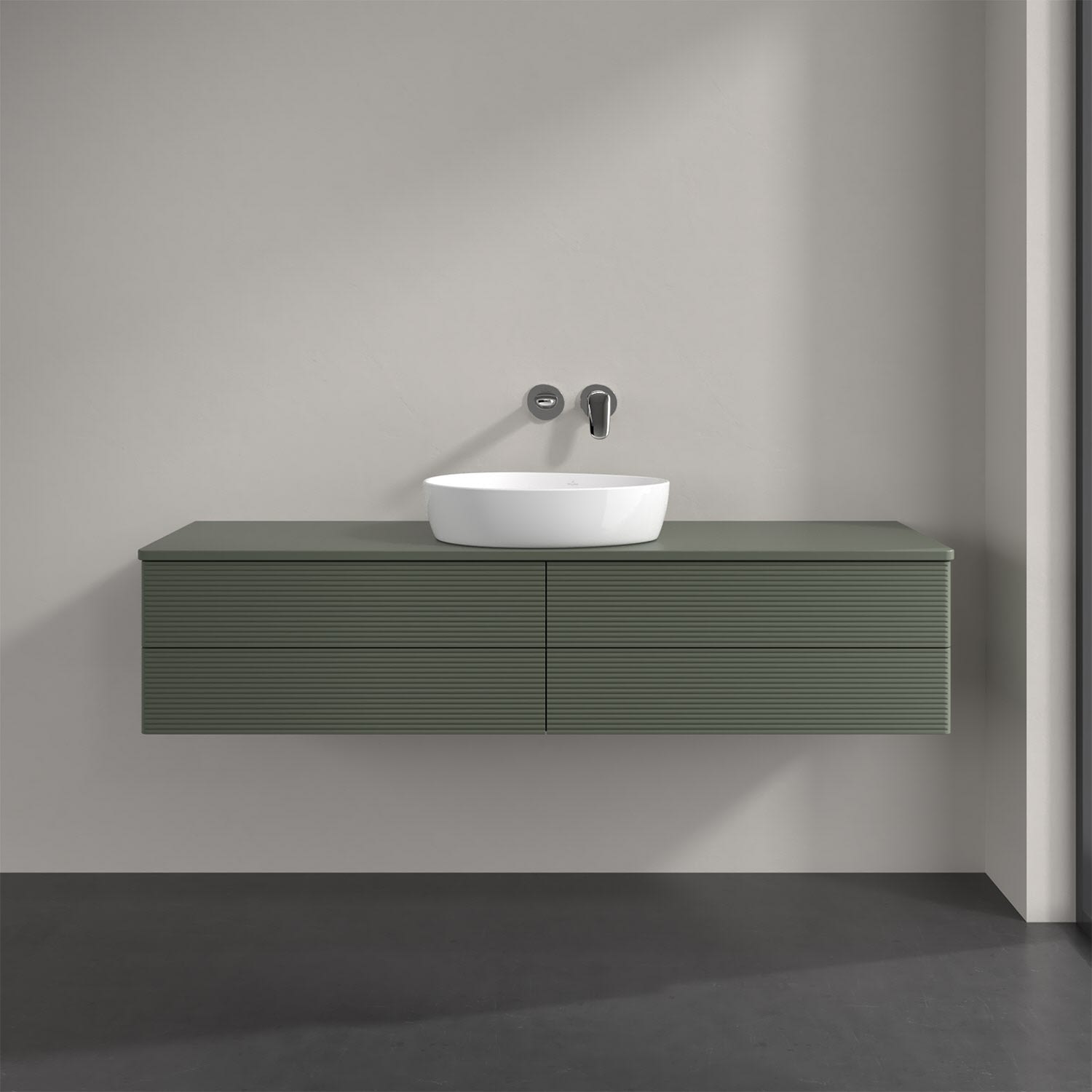 Villeroy & Boch Antao Waschbeckenunterschrank, 160 x 36 cm, 4 Auszüge mit LED-Licht, Front mit Struktur, mit Hahnloch, für Waschtisch mittig