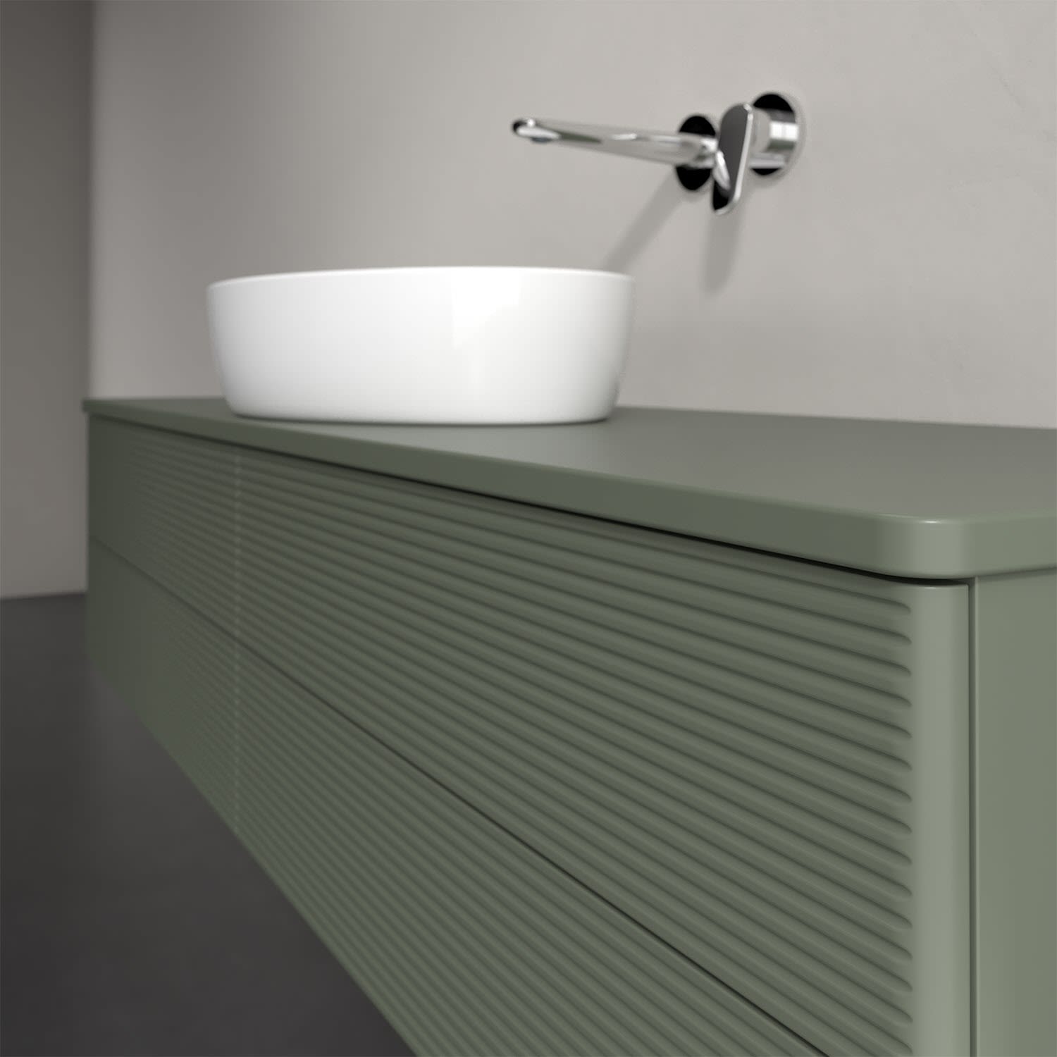 Der wandhängende Antao Waschtischunterschrank bietet mit seinen vier Auszügen und seiner erstaunlichen Größe viel Platz zum Verstauen von Utensilien im Badezimmer. Dank des mittig platzierten Aufsatzwaschtischs gibt es seitlich weiteren Platz für Handtücher, Seifenspender & Co. auf der Waschtischplatte. Inspiriert von der Natur überzeugt der Unterschrank auch optisch mit sanfter Formsprache und abgerundete Kanten. Die grifflosen Auszüge mit strukturierter Front sind mit der Push-to-Open Funktion ausgestattet und verfügen über einen Antirutschboden, damit Utensilien sicher verstaut werden können. Den Überblick behält man dank der warmweißen Auszugsbeleuchtung, die sich automatisch beim Öffnen einschaltet. Mit seiner Vollauszug- und Selbsteinzug-Funktion ist der Schrank einfach praktisch und leicht zu bedienen. Qualität von Villeroy & Boch! Für eine besonders leichte Pflege sorgt die mehrschichtig deckend lackierte Oberfläche.