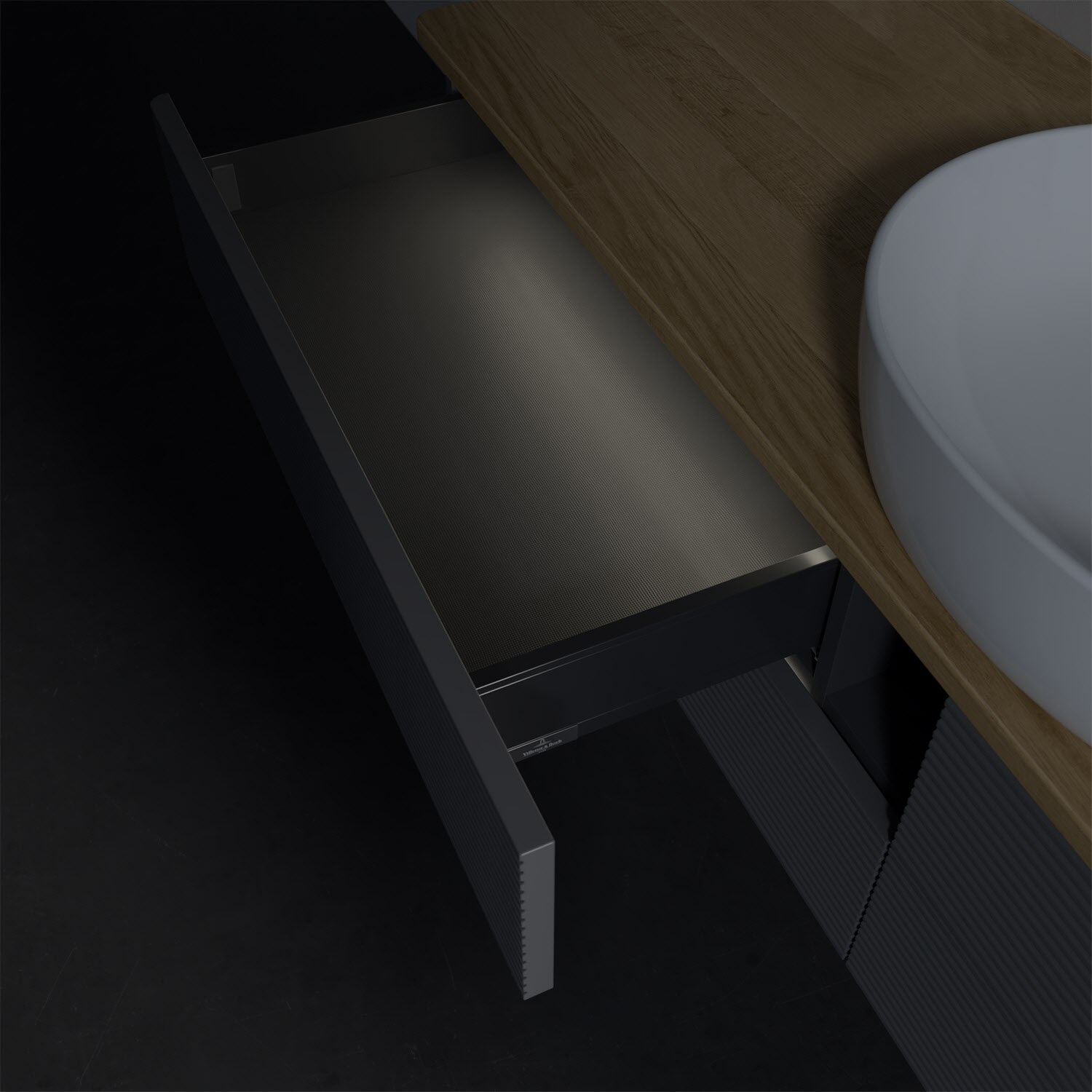 Villeroy & Boch Antao Waschbeckenunterschrank, 160 x 36 cm, 4 Auszüge mit LED-Licht, Front mit Struktur, mit Hahnloch, für Waschtisch mittig