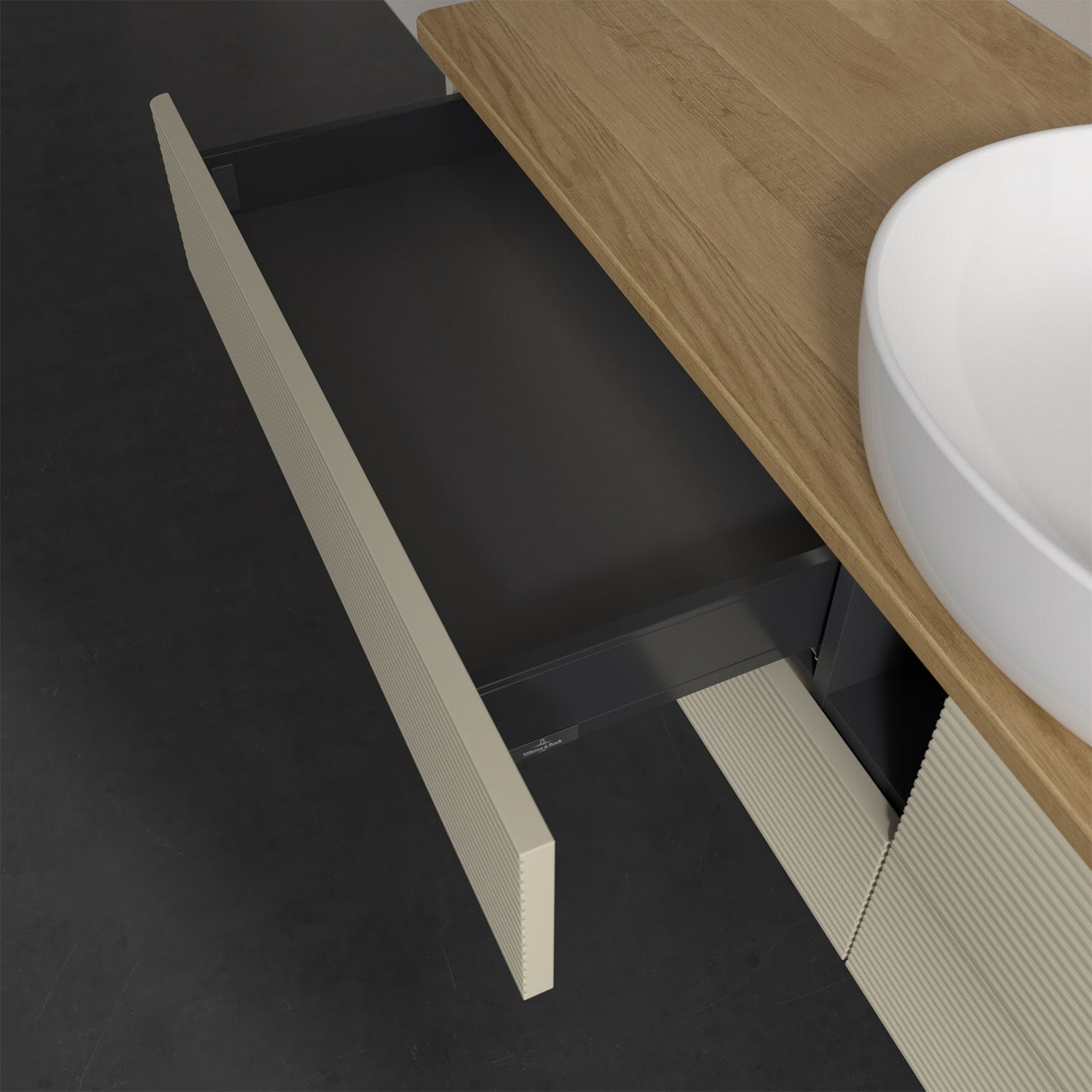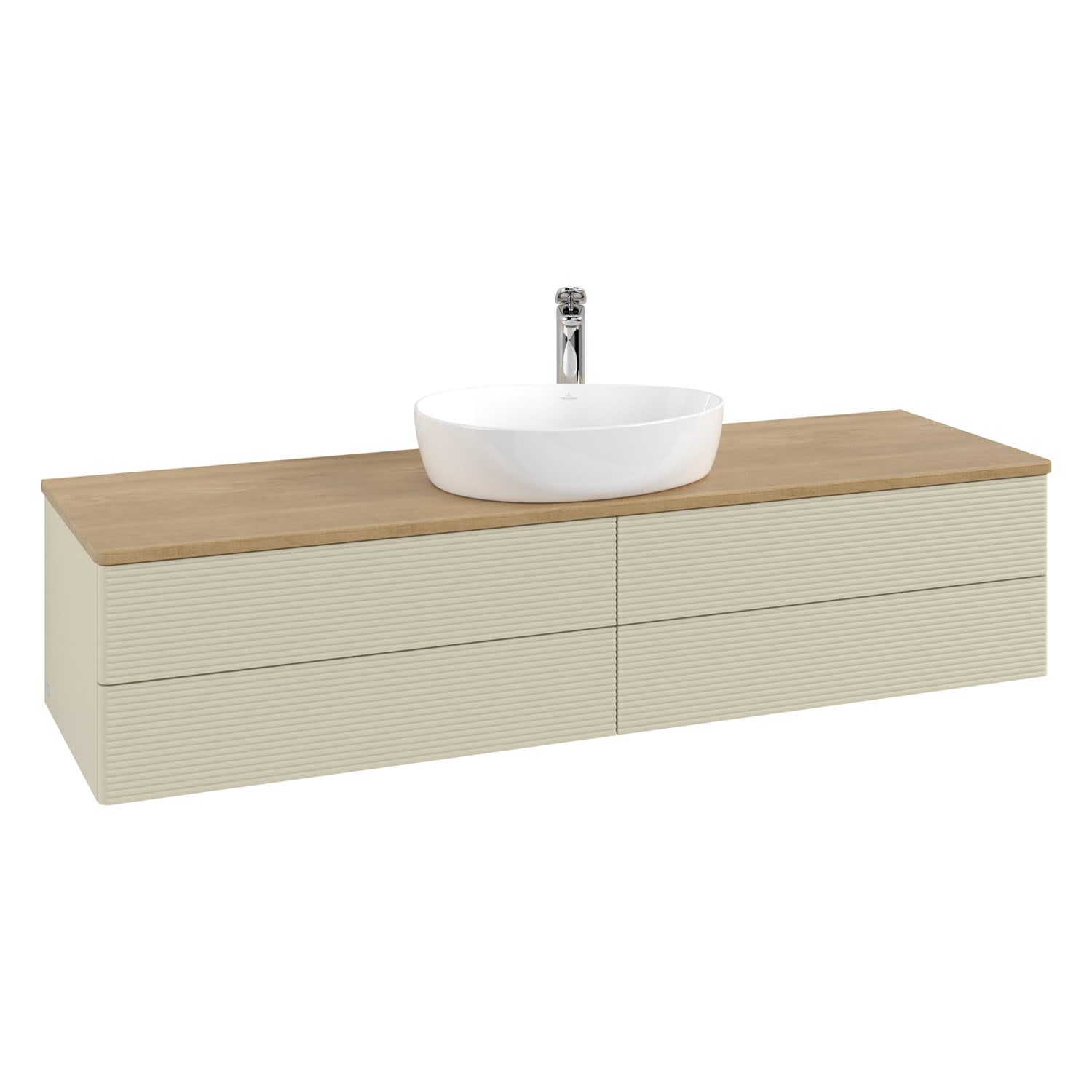 Villeroy & Boch Antao Waschbeckenunterschrank, 160 x 36 cm, 4 Auszüge mit LED-Licht, Front mit Struktur, mit Hahnloch, für Waschtisch mittig
