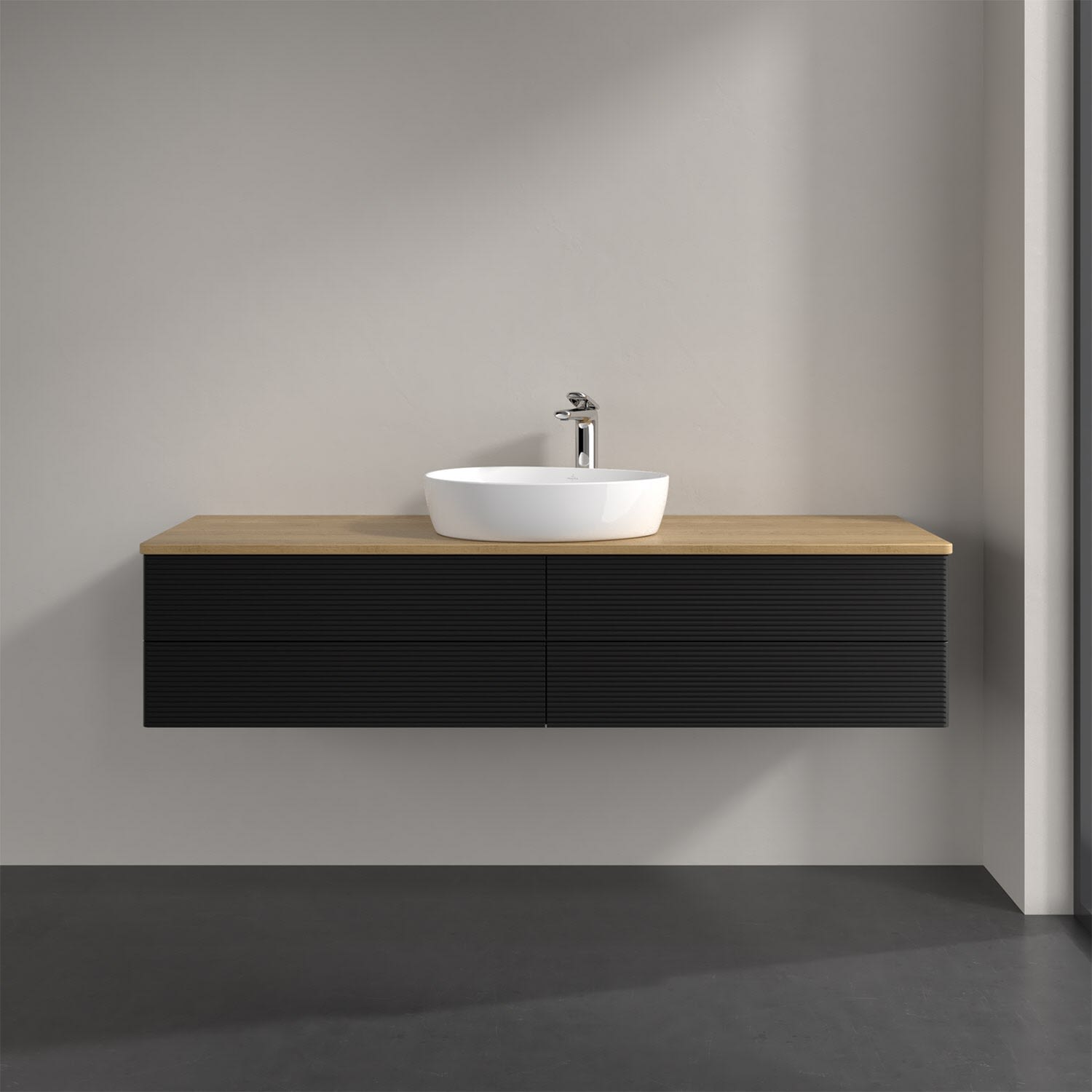 Villeroy & Boch Antao Waschbeckenunterschrank, 160 x 36 cm, 4 Auszüge mit LED-Licht, Front mit Struktur, mit Hahnloch, für Waschtisch mittig