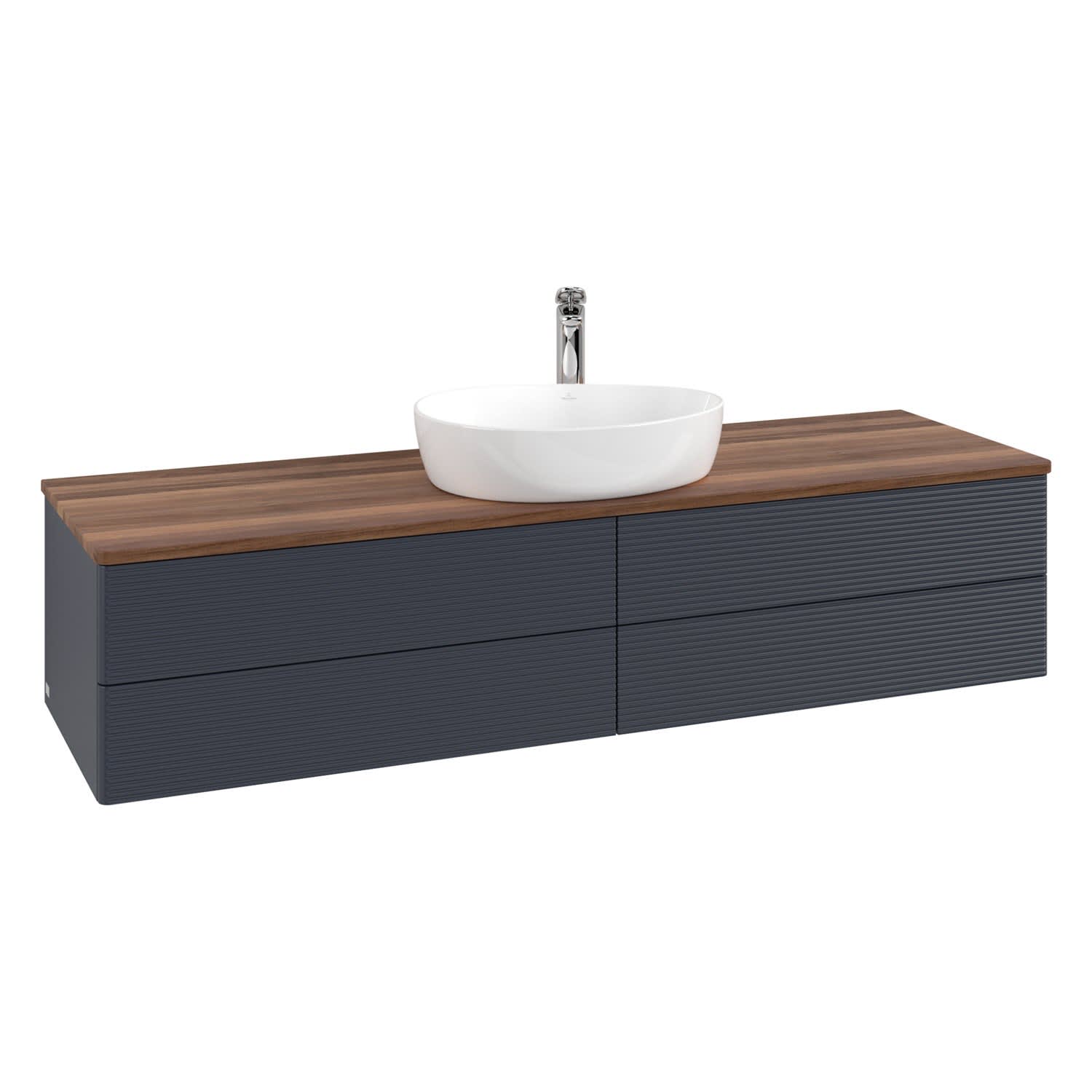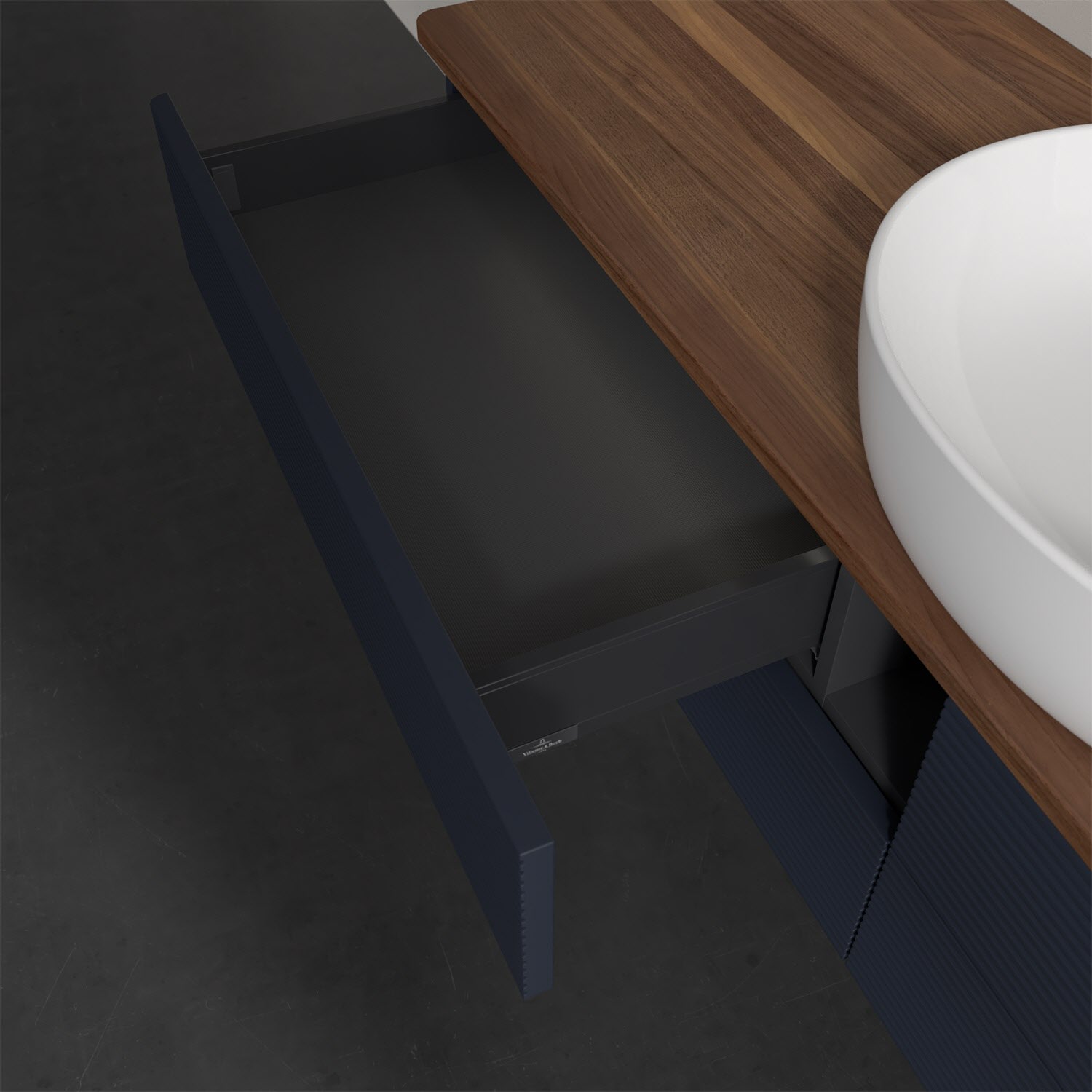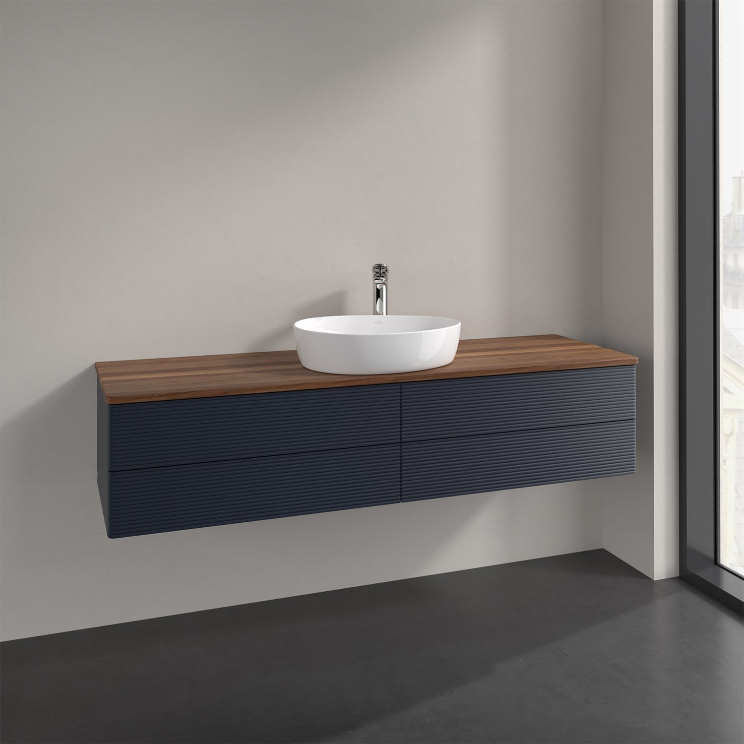 Villeroy & Boch Antao Waschbeckenunterschrank, 160 x 36 cm, 4 Auszüge mit LED-Licht, Front mit Struktur, mit Hahnloch, für Waschtisch mittig