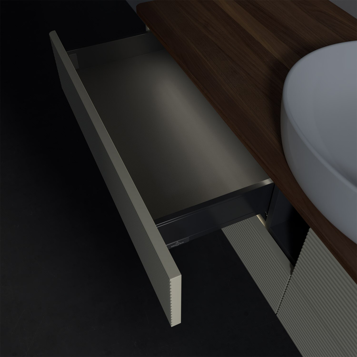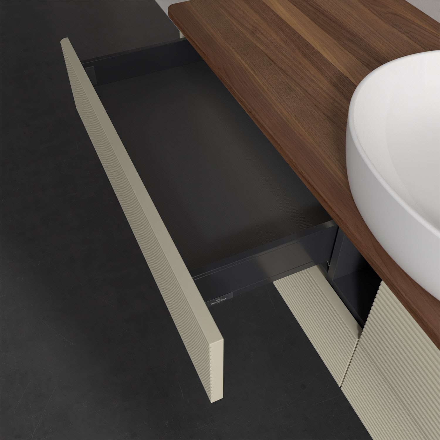 Villeroy & Boch Antao Waschbeckenunterschrank, 160 x 36 cm, 4 Auszüge mit LED-Licht, Front mit Struktur, mit Hahnloch, für Waschtisch mittig